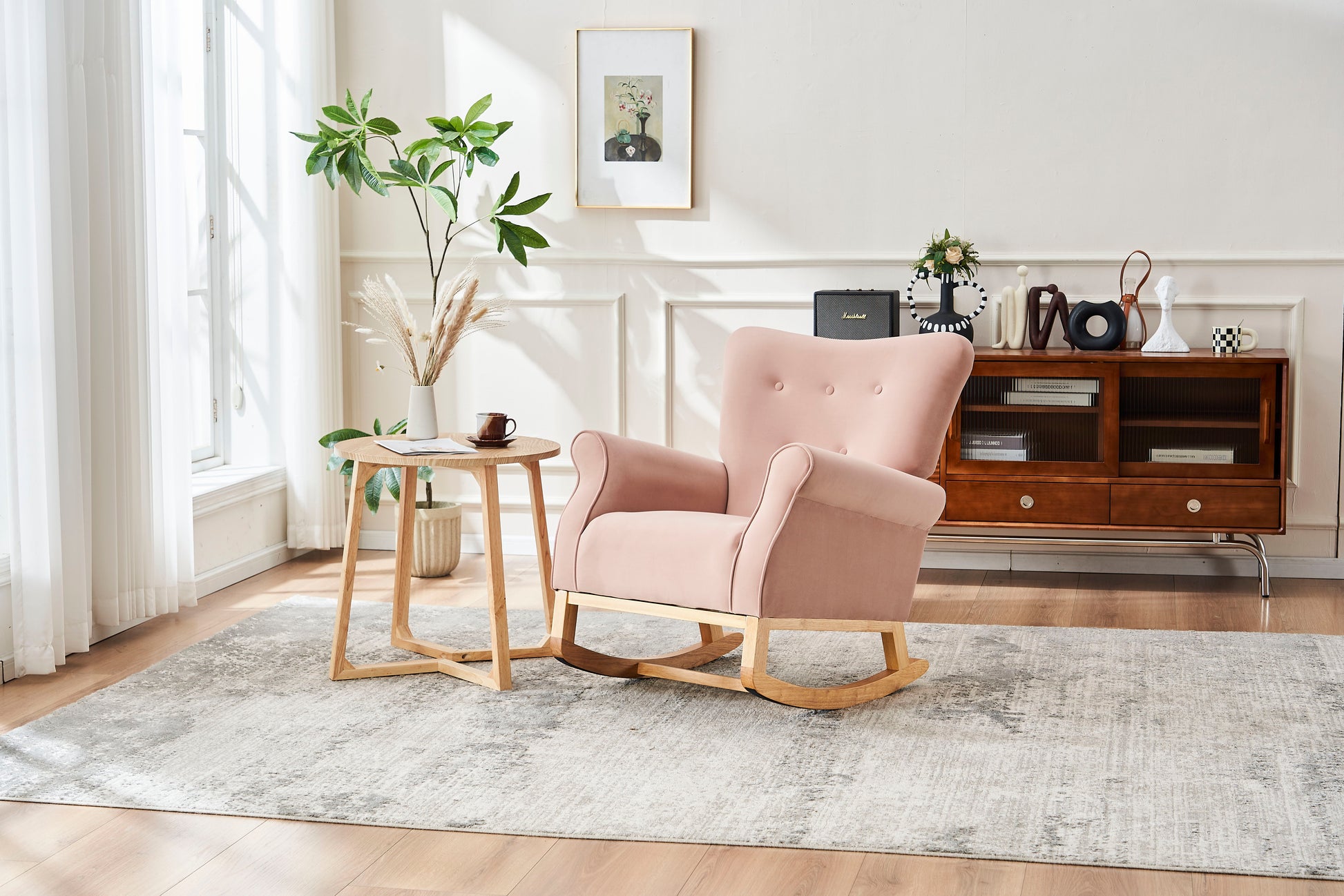 Baby Room High Back Rocking Chair Nursery Chair, Comfortable Rocker Fabric Padded Seat, Modern High Back Armchair - Pink