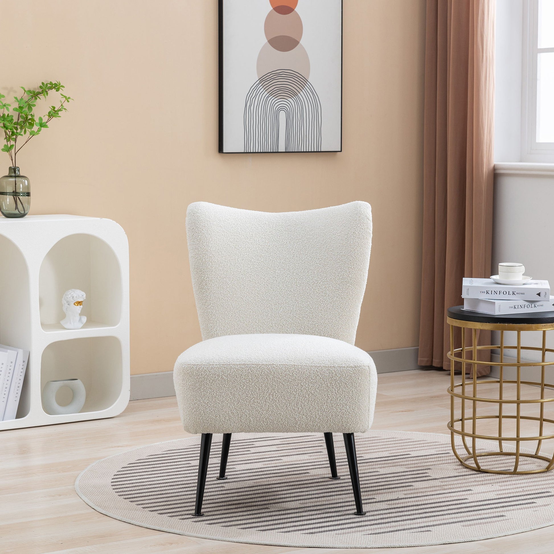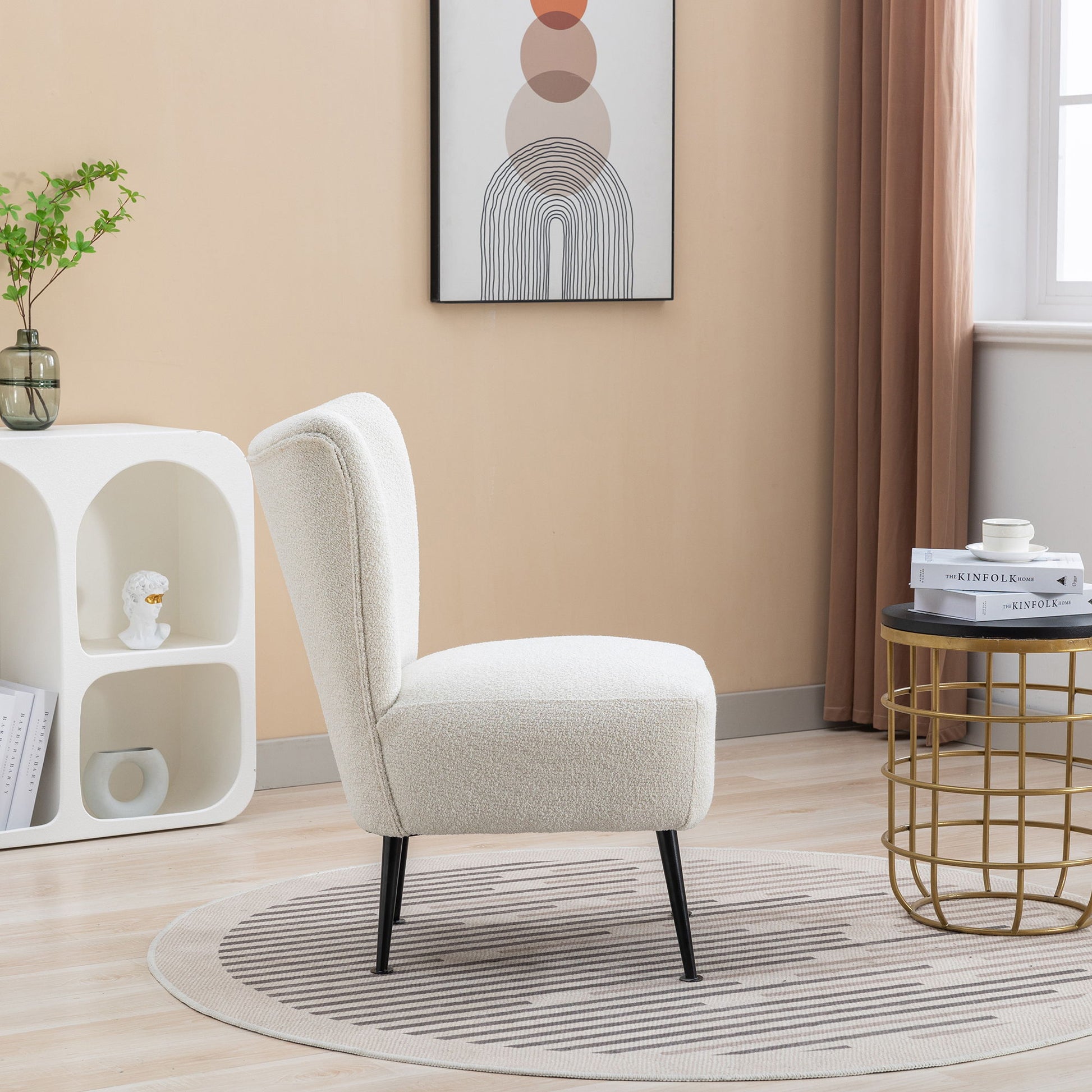 Boucle Upholstered Armless Accent Chair Modern Slipper Chair, Cozy Curved Wingback Armchair, Corner Side Chair
