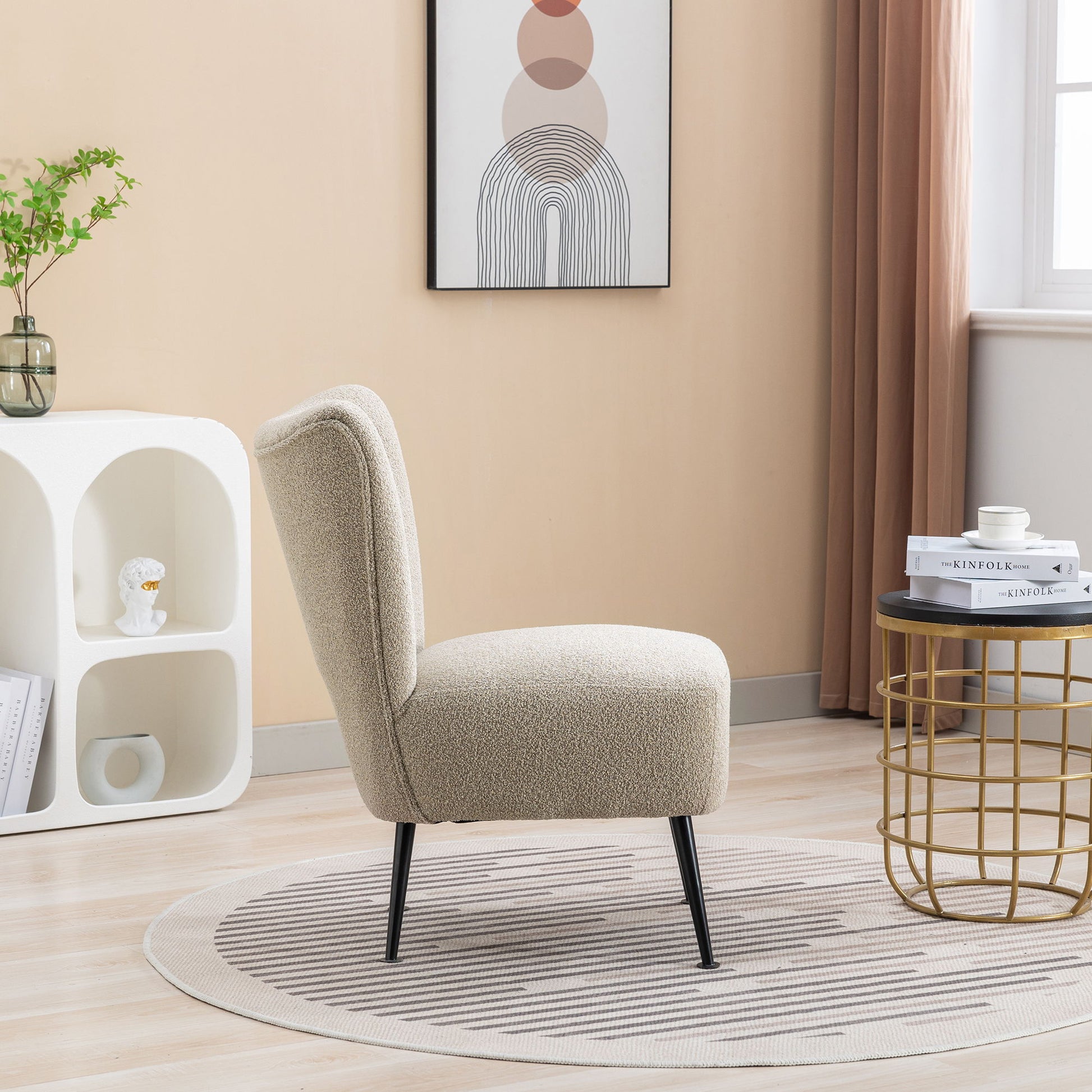 Boucle Upholstered Armless Accent Chair Modern Slipper Chair, Cozy Curved Wingback Armchair, Corner Side Chair For Bedroom Living Room Office Cafe Lounge Hotel - Beige
