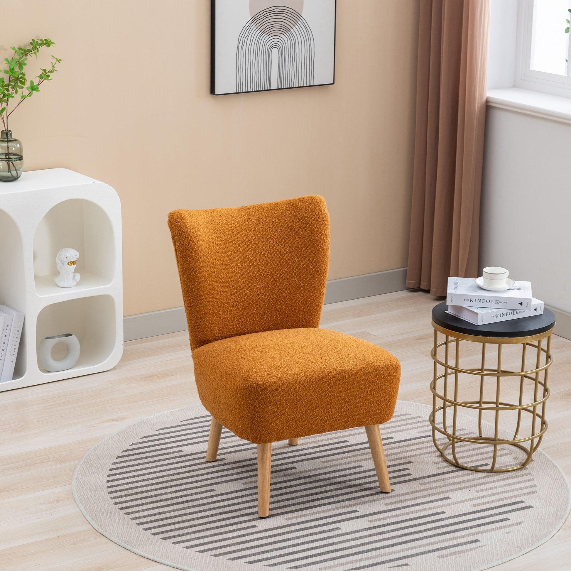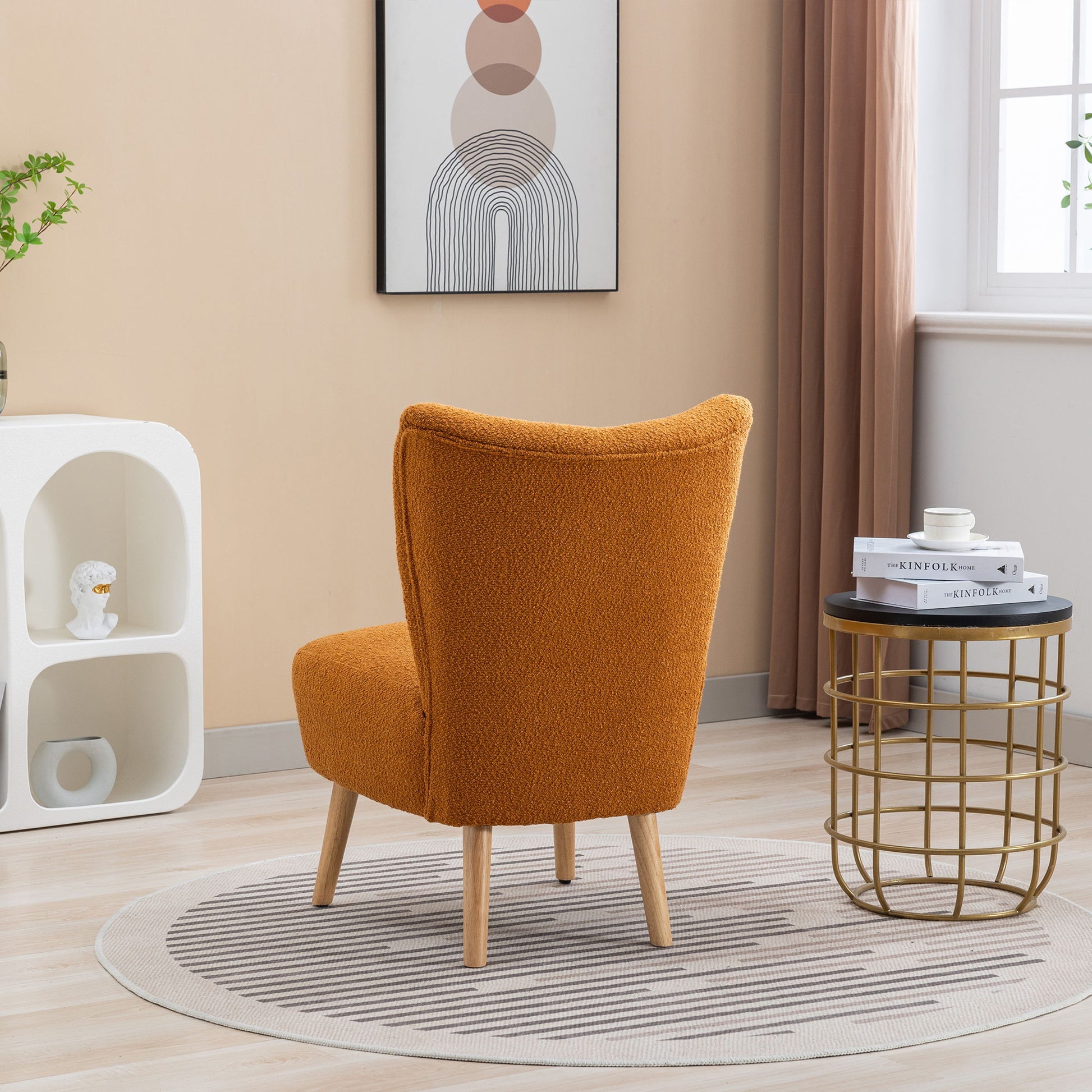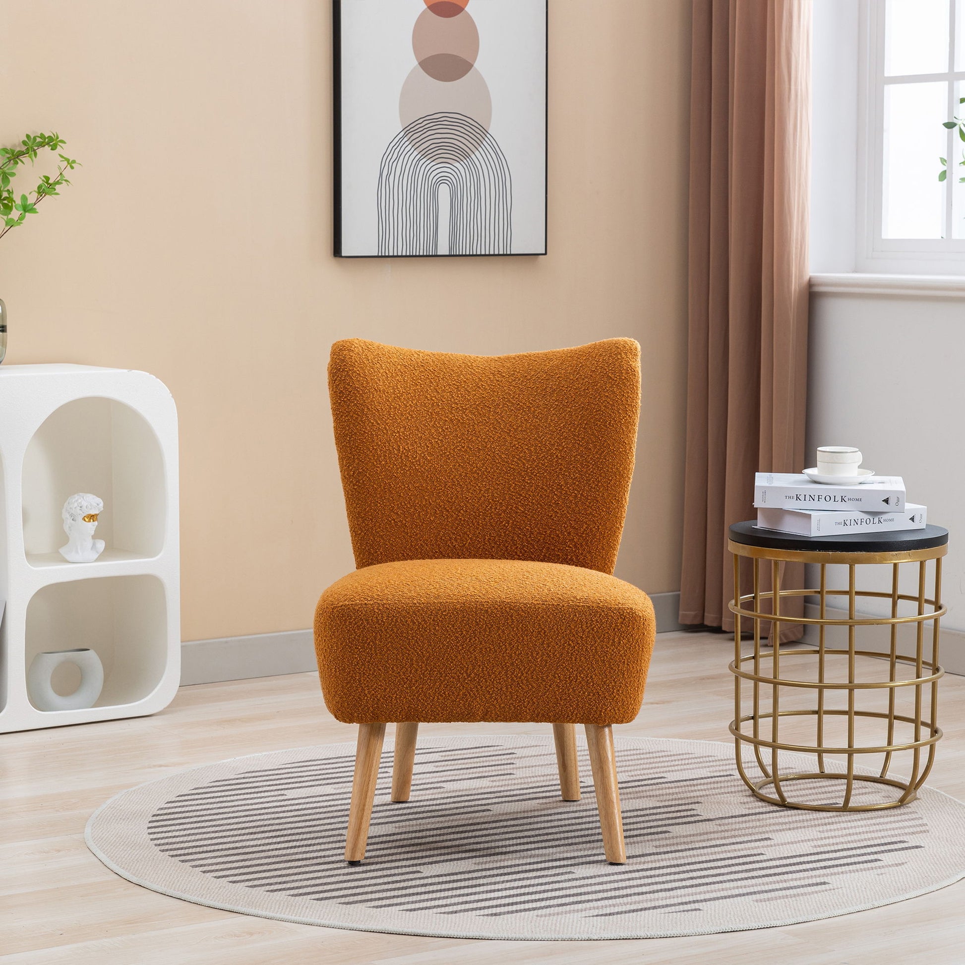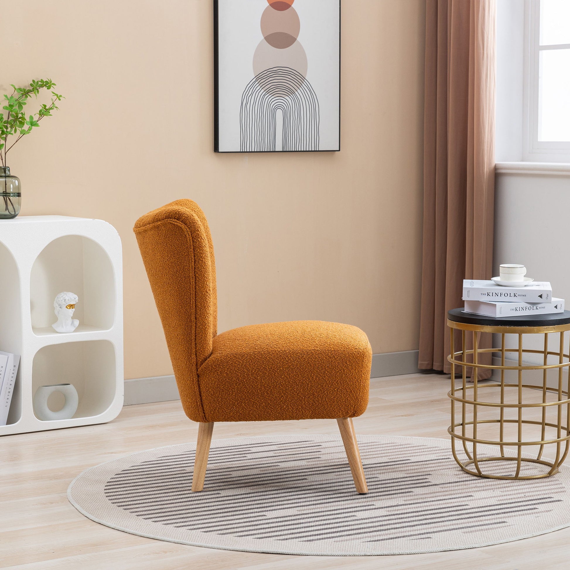 Boucle Upholstered Armless Accent Chair Modern Slipper Chair, Cozy Curved Wingback Armchair, Corner Side Chair For Bedroom Living Room Office Cafe Lounge Hotel - Caramel
