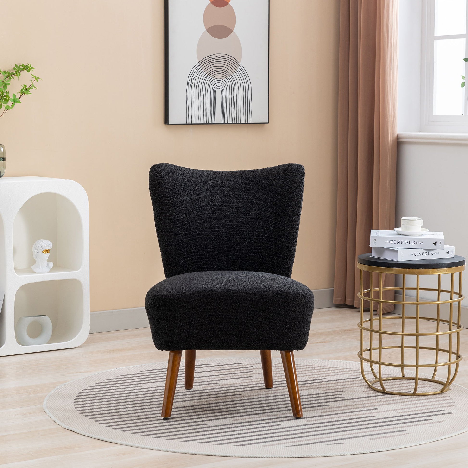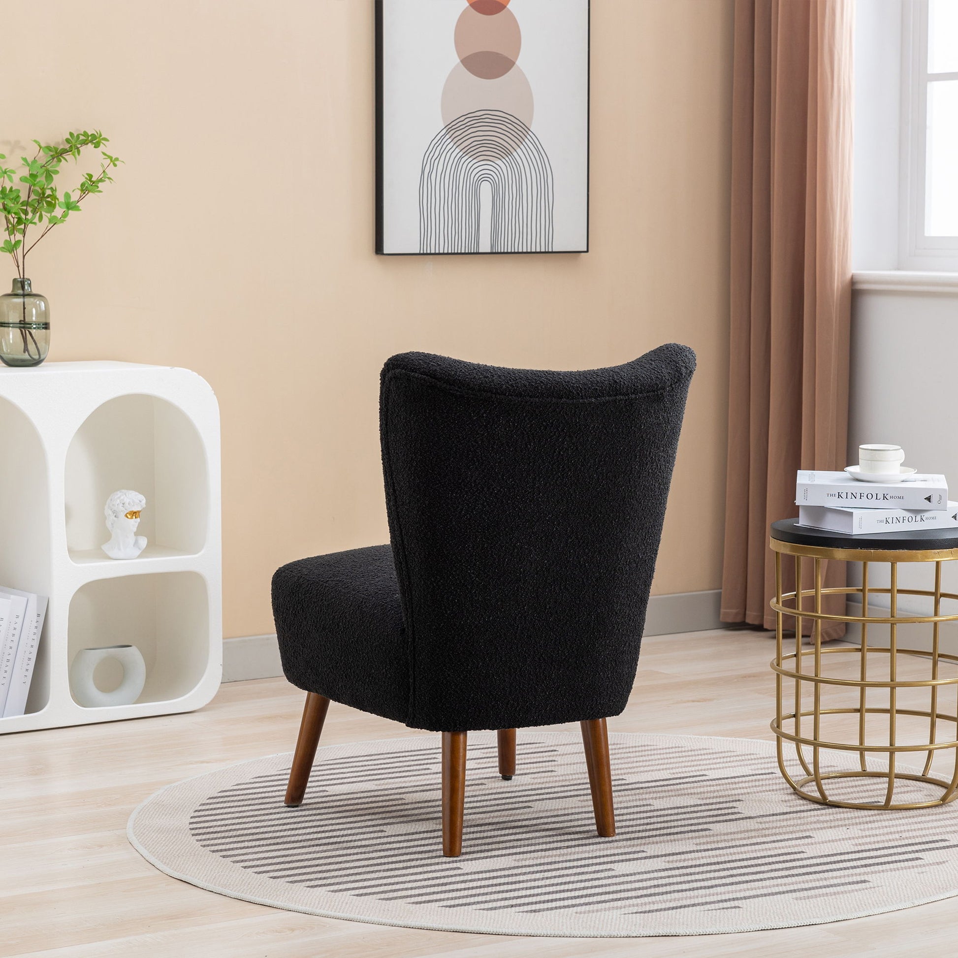 Boucle Upholstered Armless Accent Chair Modern Slipper Chair, Cozy Curved Wingback Armchair, Corner Side Chair For Bedroom Living Room Office Cafe Lounge Hotel - Black