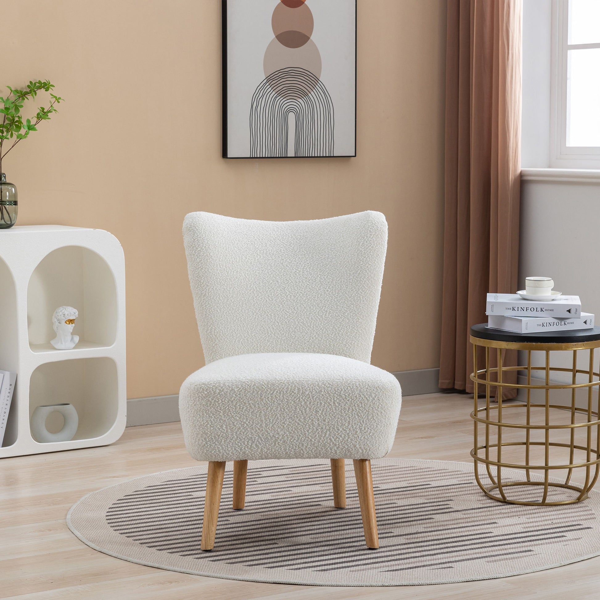 Boucle Upholstered Armless Accent Chair Modern Slipper Chair, Cozy Curved Wingback Armchair, Corner Side Chair For Bedroom Living Room Office Cafe Lounge Hotel - Ivory