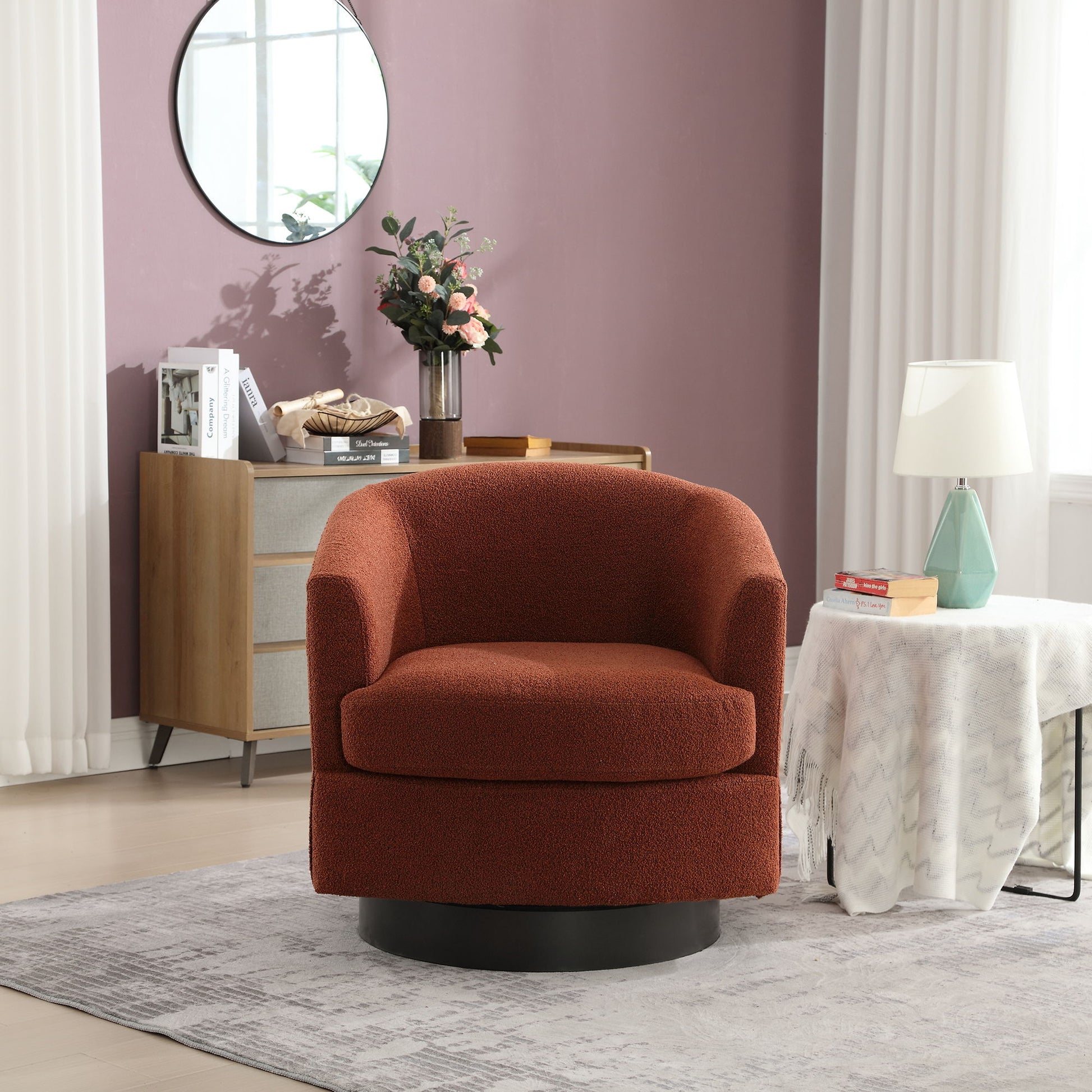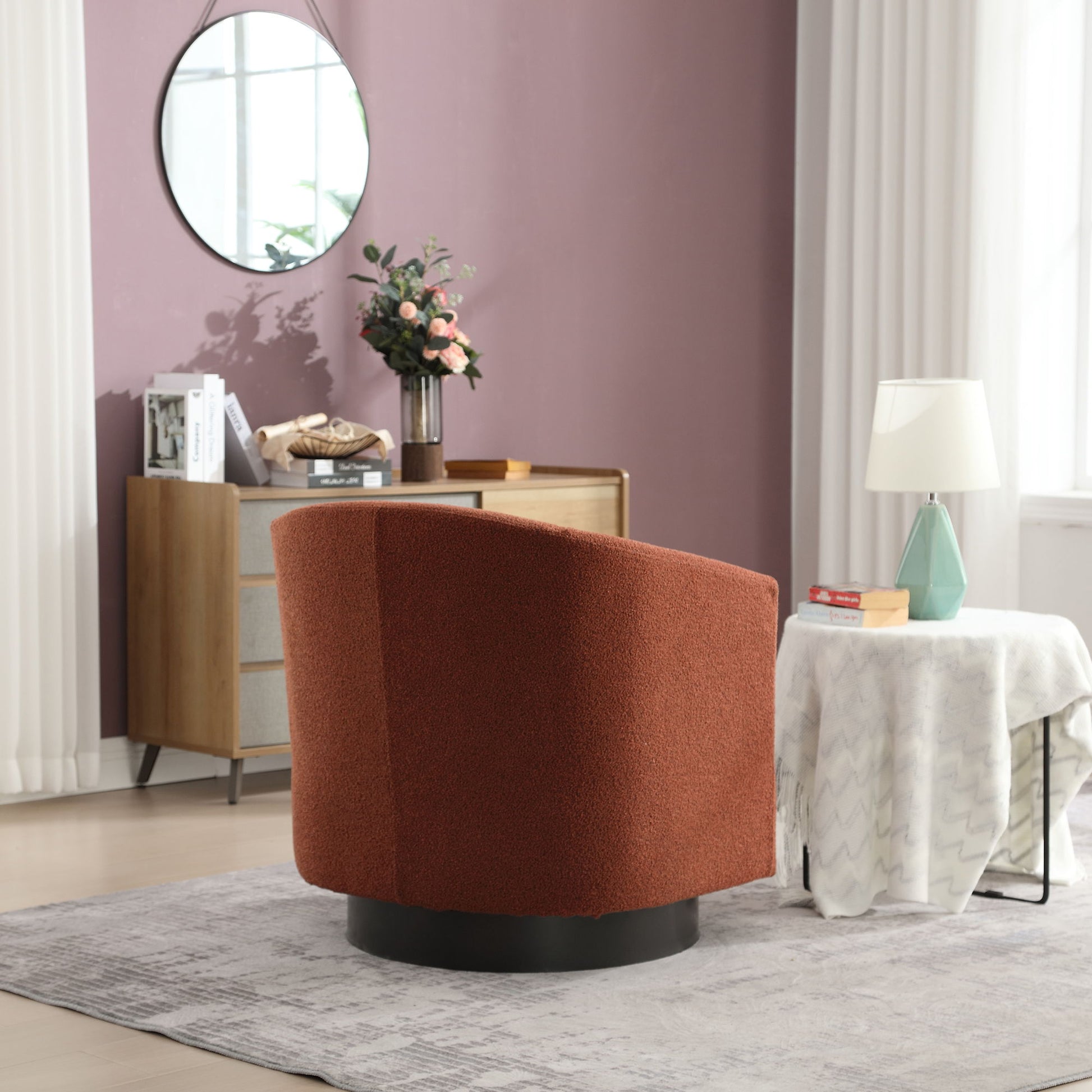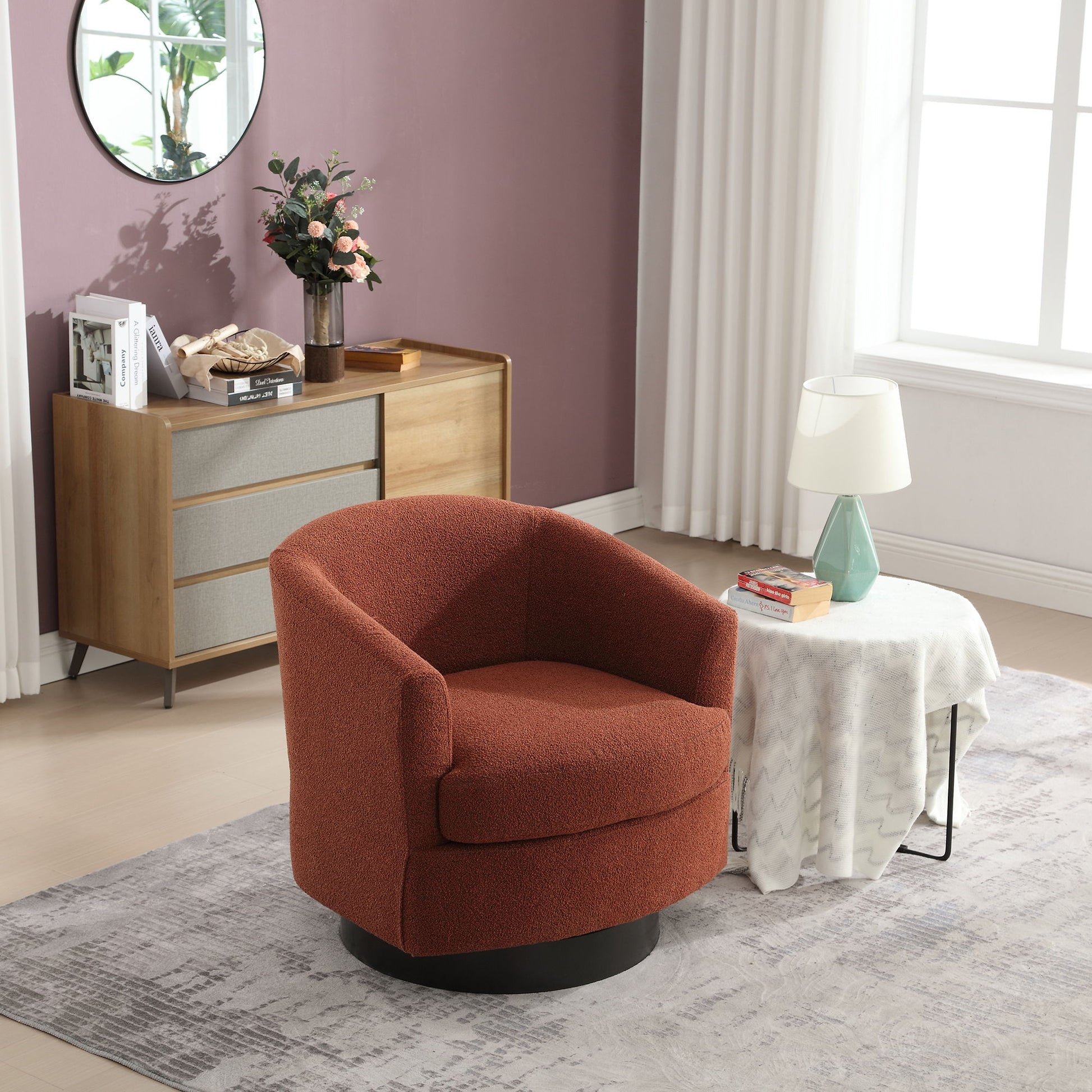 Boucle Upholstered Swivel Cuddle Accent Round Barrel Chair, Modern Single Sofa, 360 Degree Circle Club Armchair For Nursery Bedroom Living Room Coffe Bar Lounge Hotel - Burnt Orange