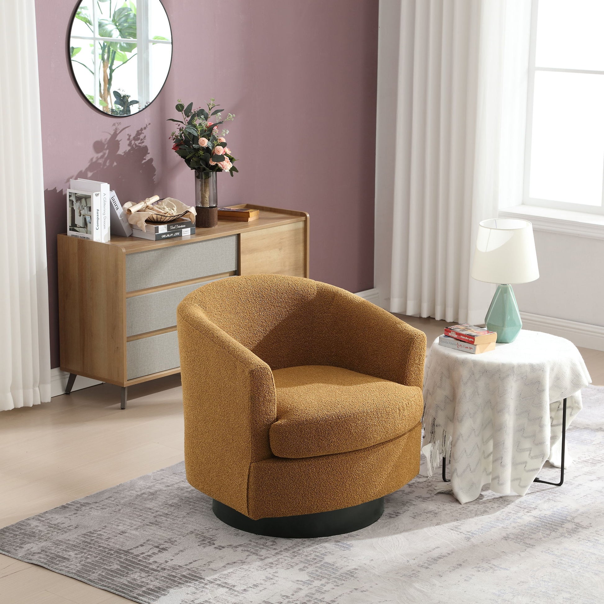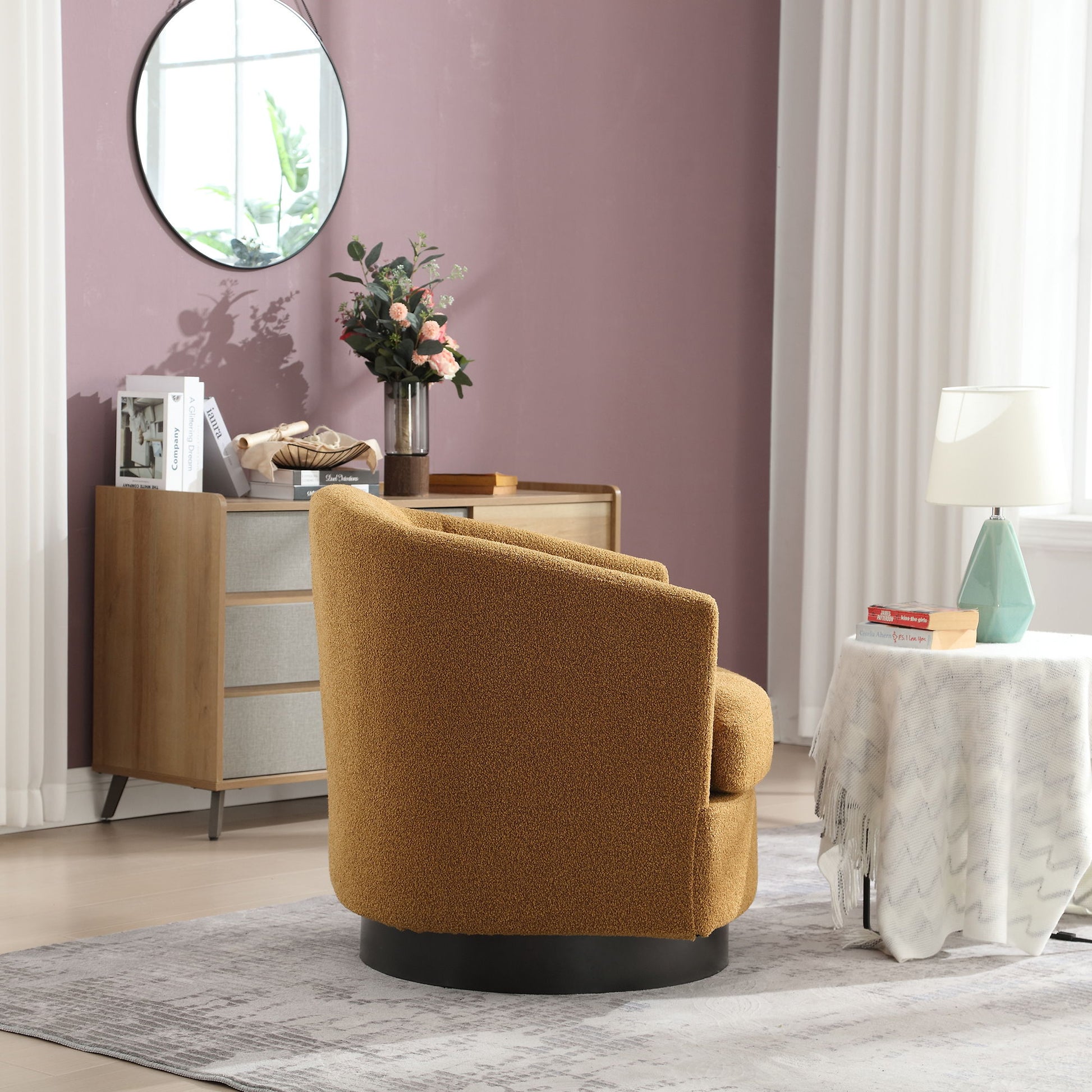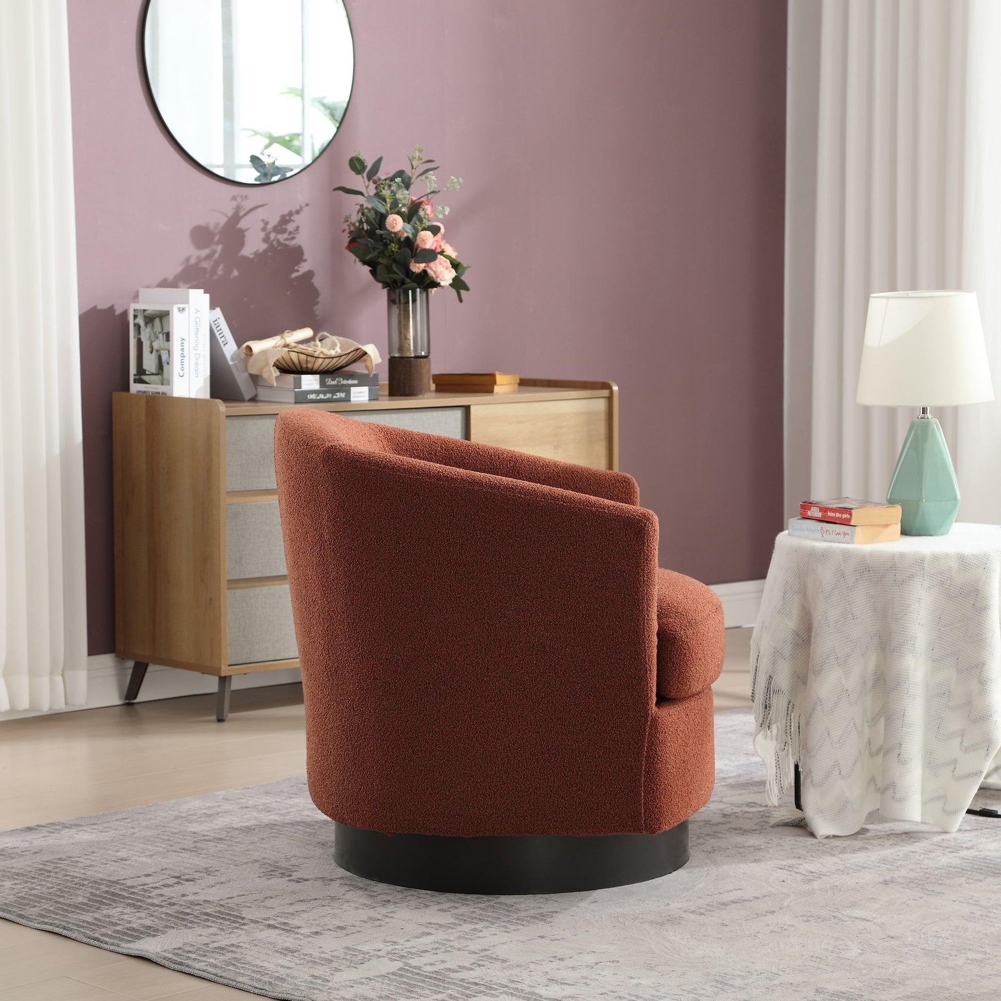 Boucle Upholstered Swivel Cuddle Accent Round Barrel Chair, Modern Single Sofa, 360 Degree Circle Club Armchair For Nursery Bedroom Living Room Coffe Bar Lounge Hotel - Burnt Orange