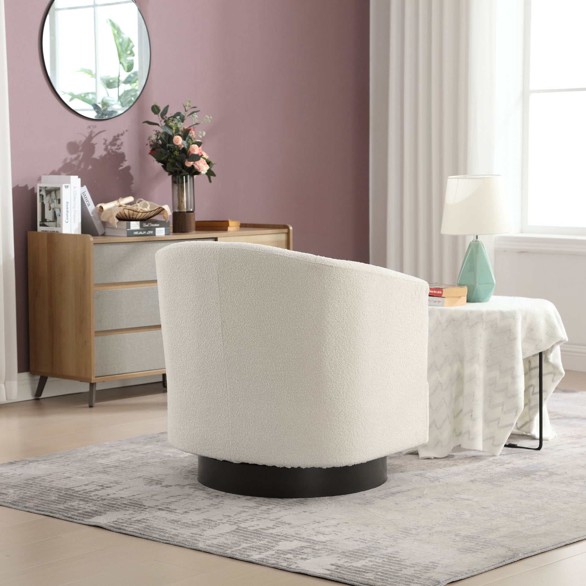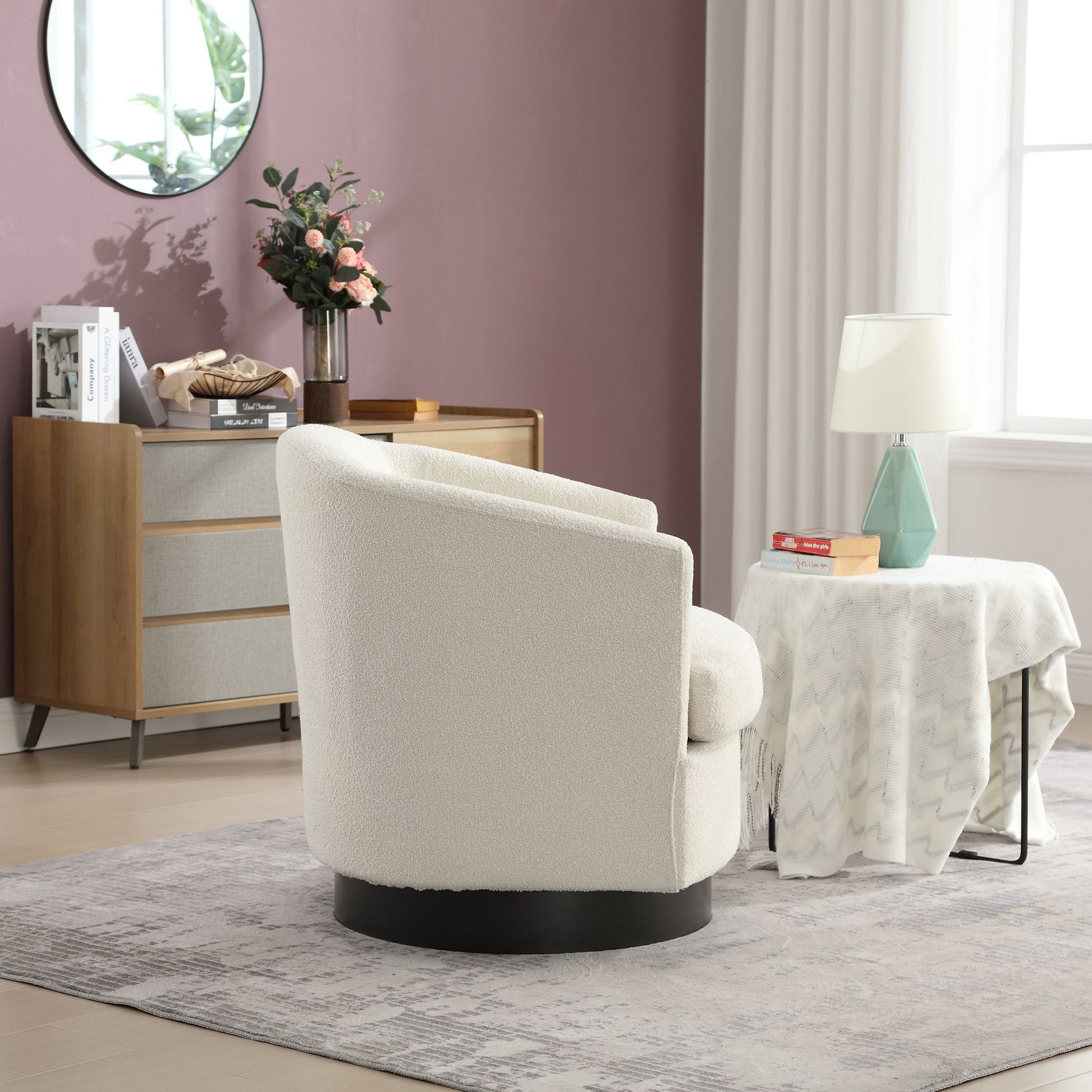 Comfortable Seat Cushion: The chair features a 360° rotation and a seat cushion filled with a distinctive sponge for enhanced comfort. Excellent design of the chair: With a wide seat, an engineered wood frame, and a curved back, this chair offers a classic silhouette perfect for reading. High quality fabric: Made with rare boucle fabric, the chair is skin-friendly, soft, and durable. Product style: This accent chair is a unique decor piece suitable for various occasions and can elevate the aesthetic of any room.