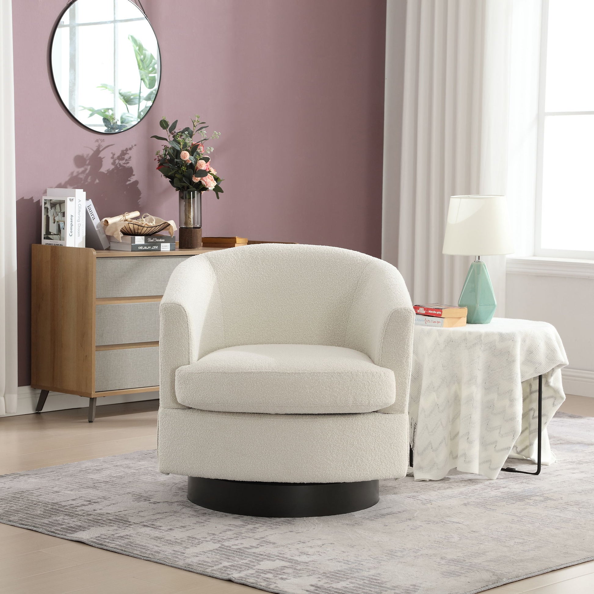 Boucle Upholstered Swivel Cuddle Accent Round Barrel Chair Modern Single Sofa, 360 Degree Circle Club Armchair For Nursery Bedroom Living Room Coffe Bar Lounge Hotel - Beige