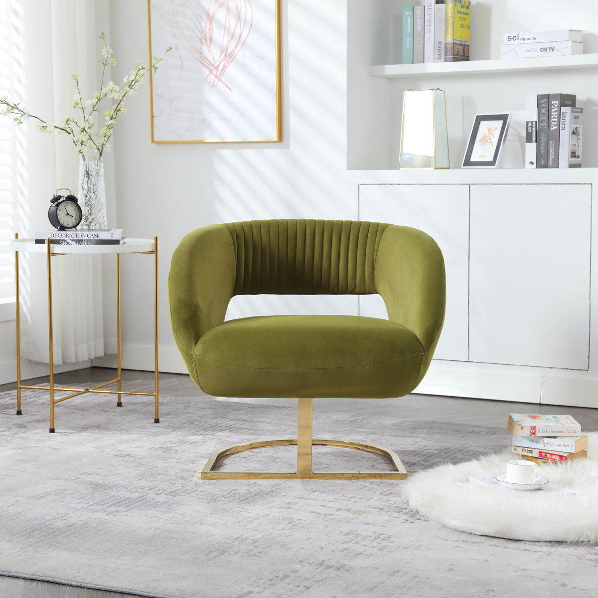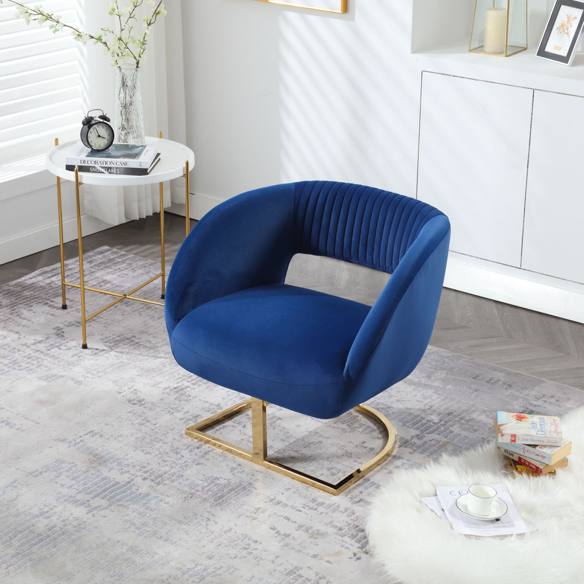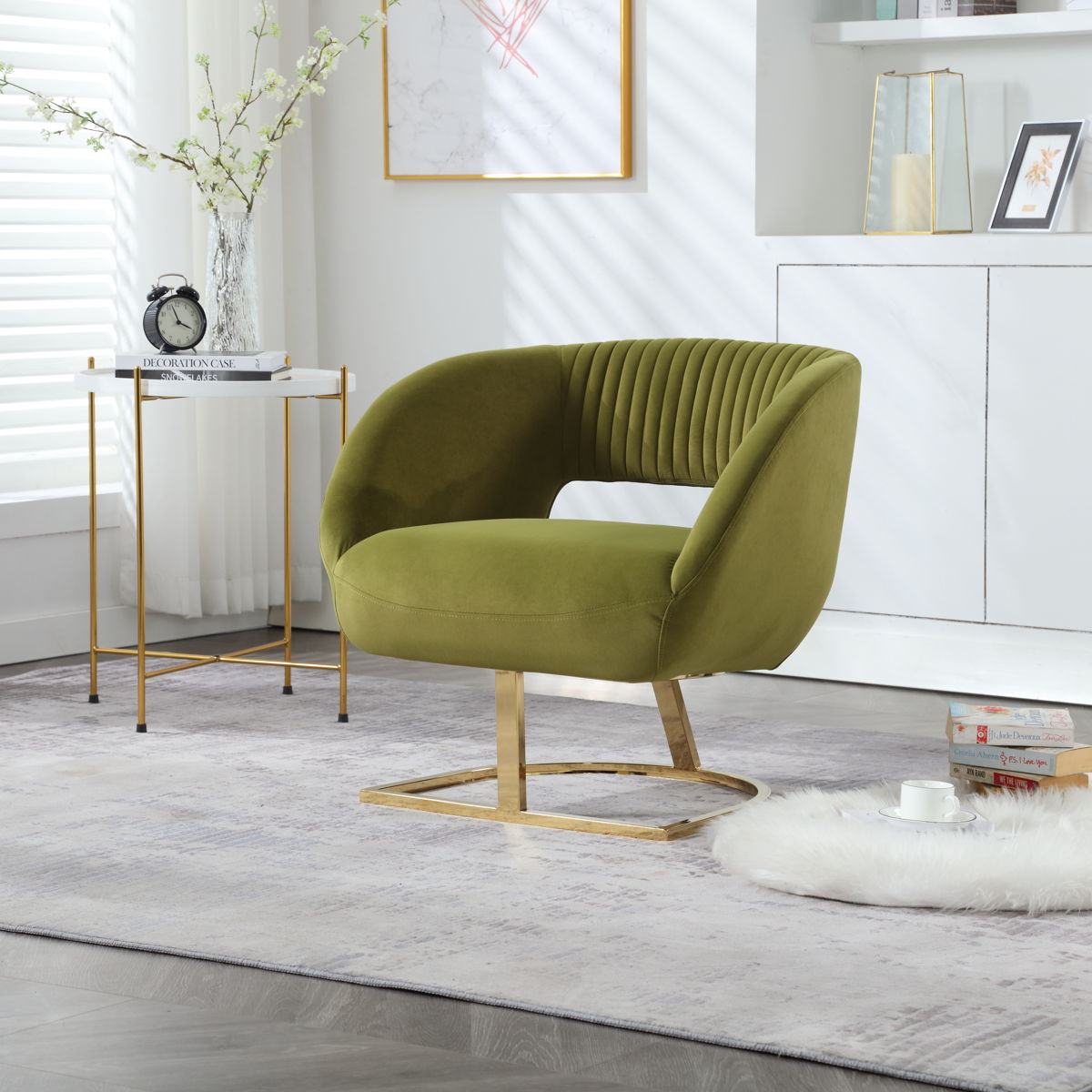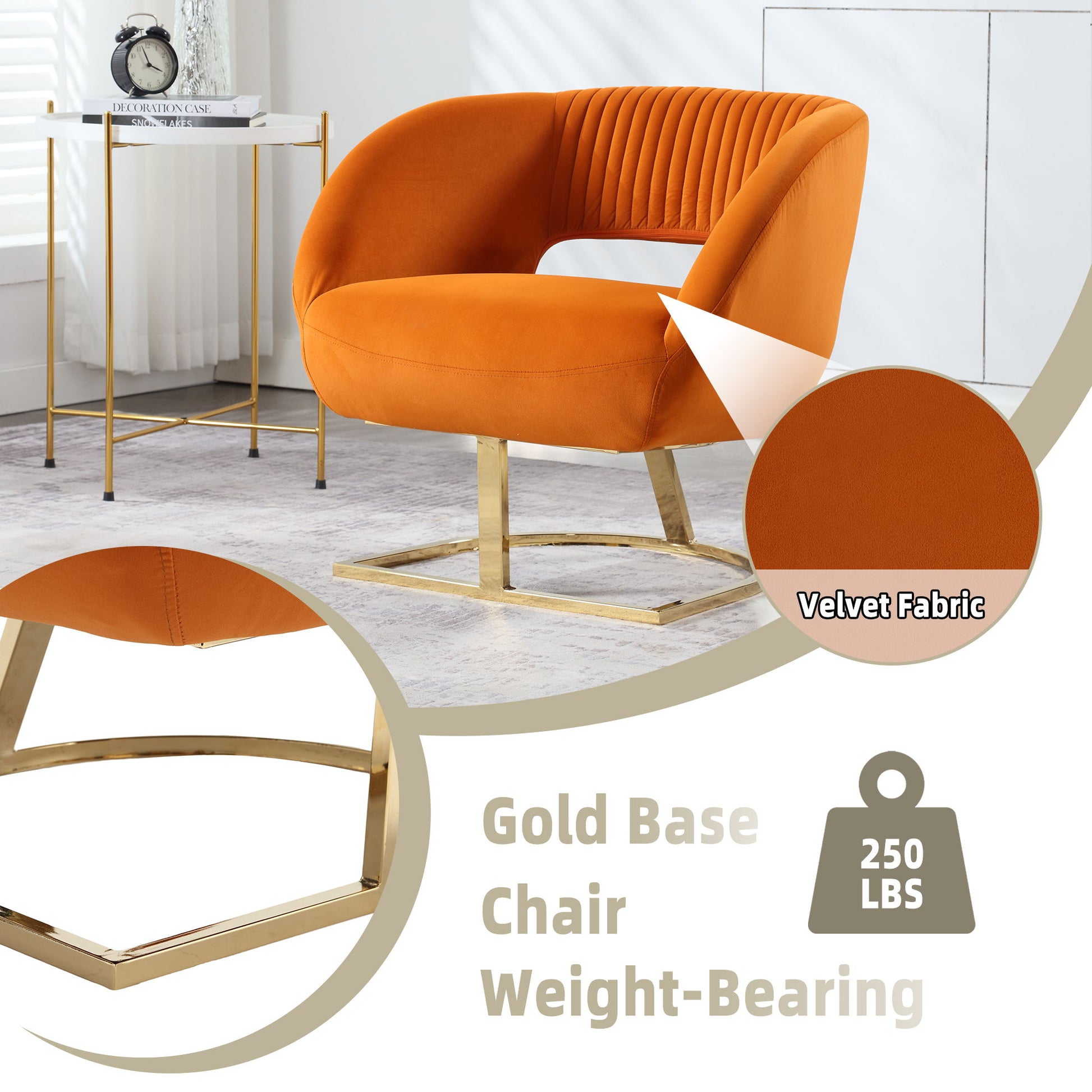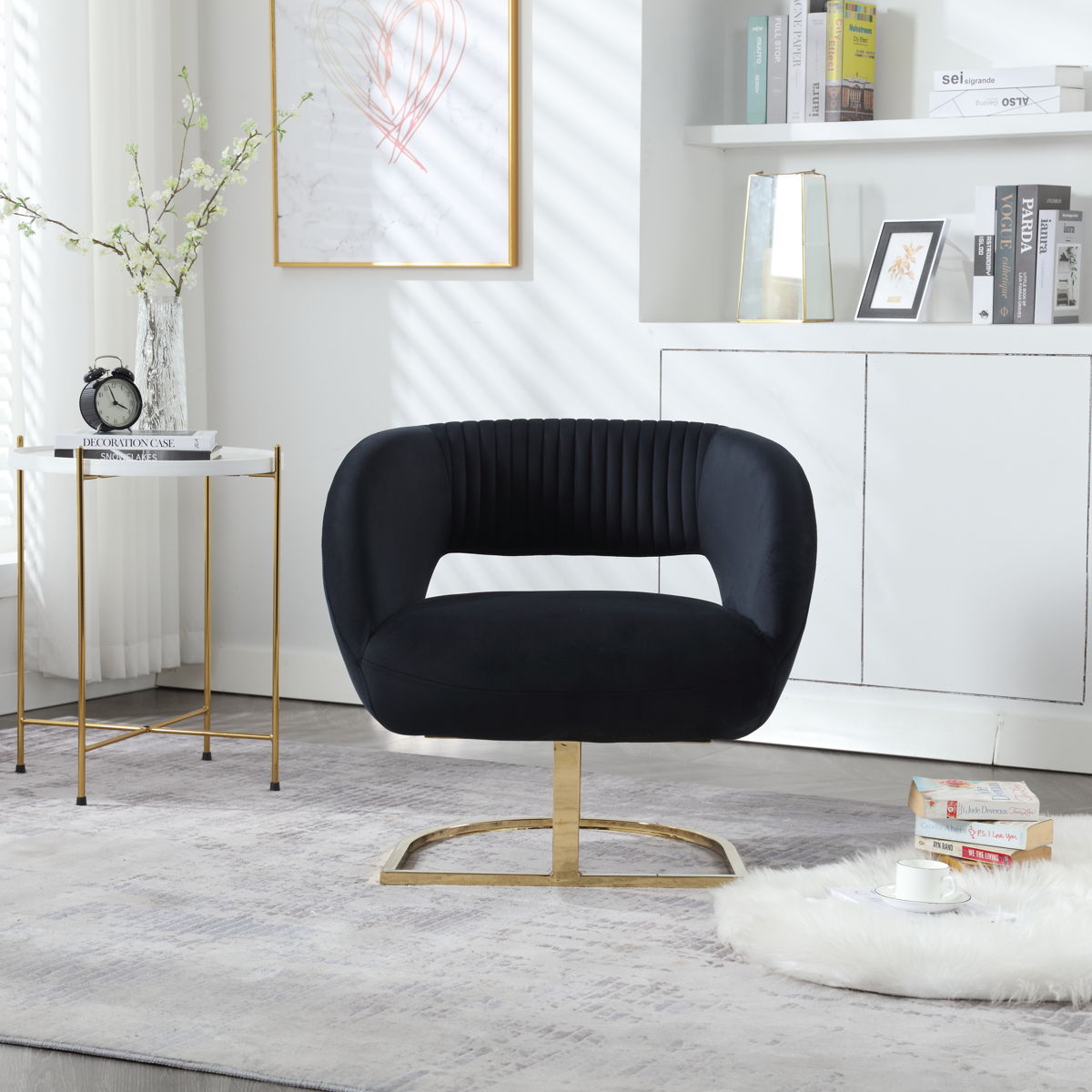 Stylish Upholstered Chair: House hold upholstered living room chair in textured velvet fabric. Versatile Accent Piece: Metal stand accent chair adds style and functionality to any space. Compact Packaging: Chair ships in a convenient size of 29.13*26.97*20.08.