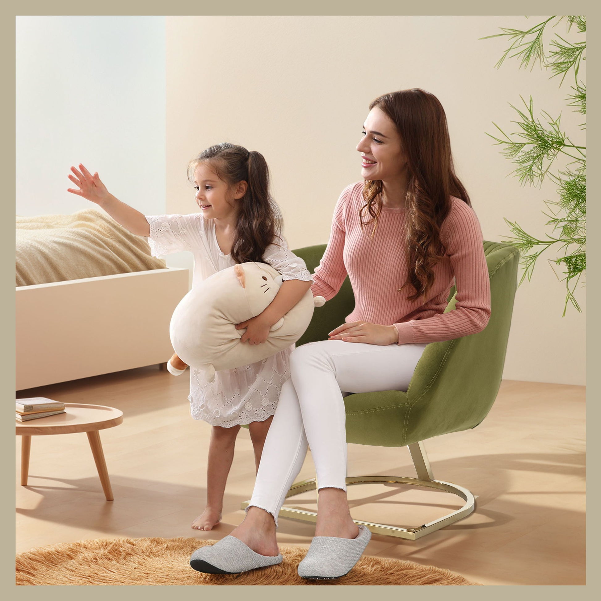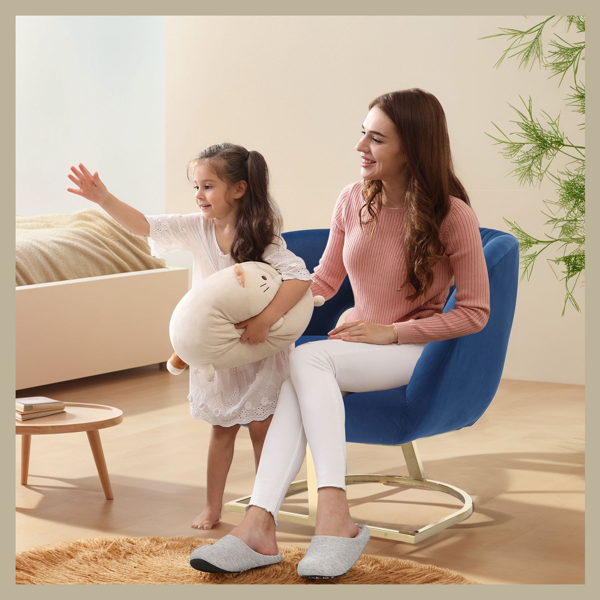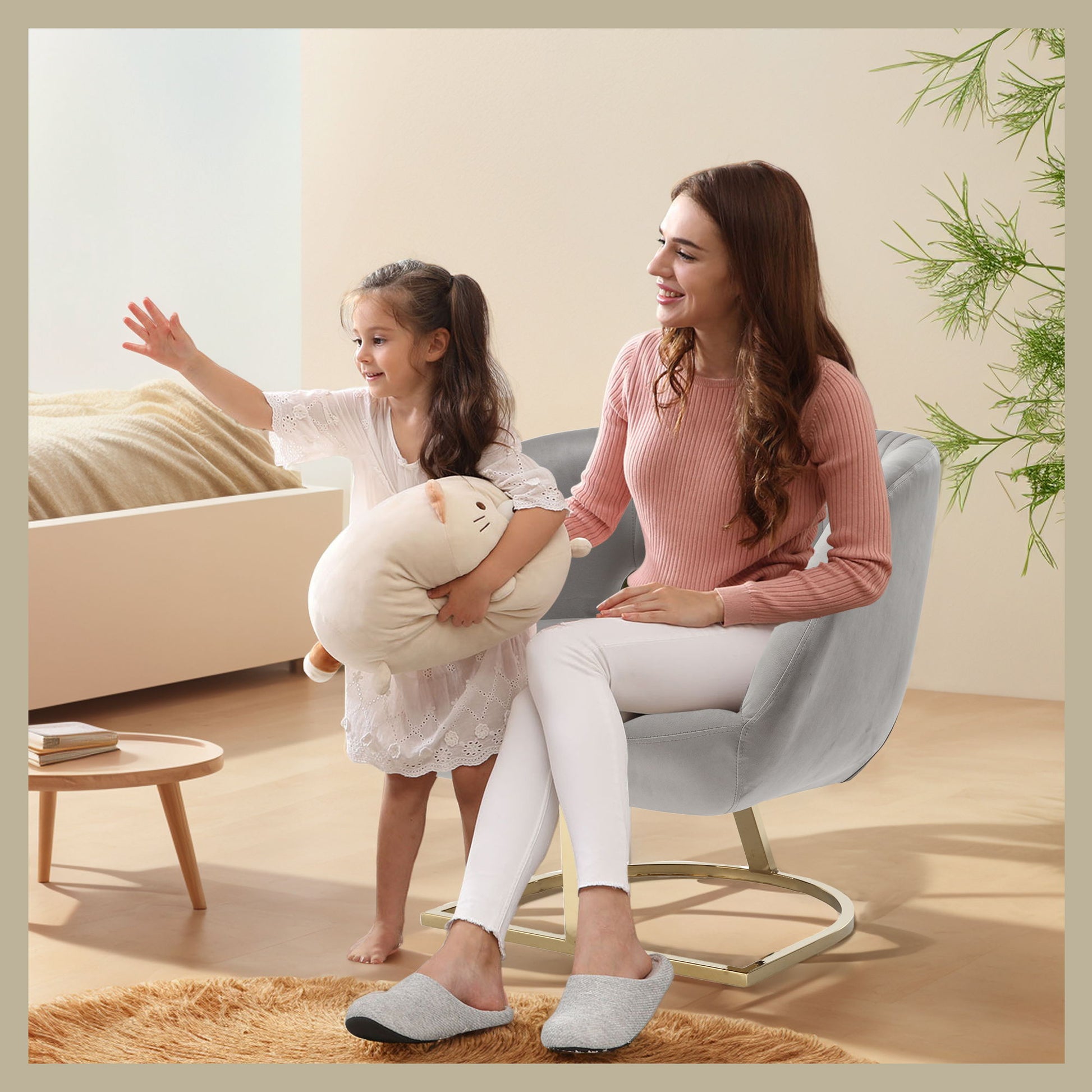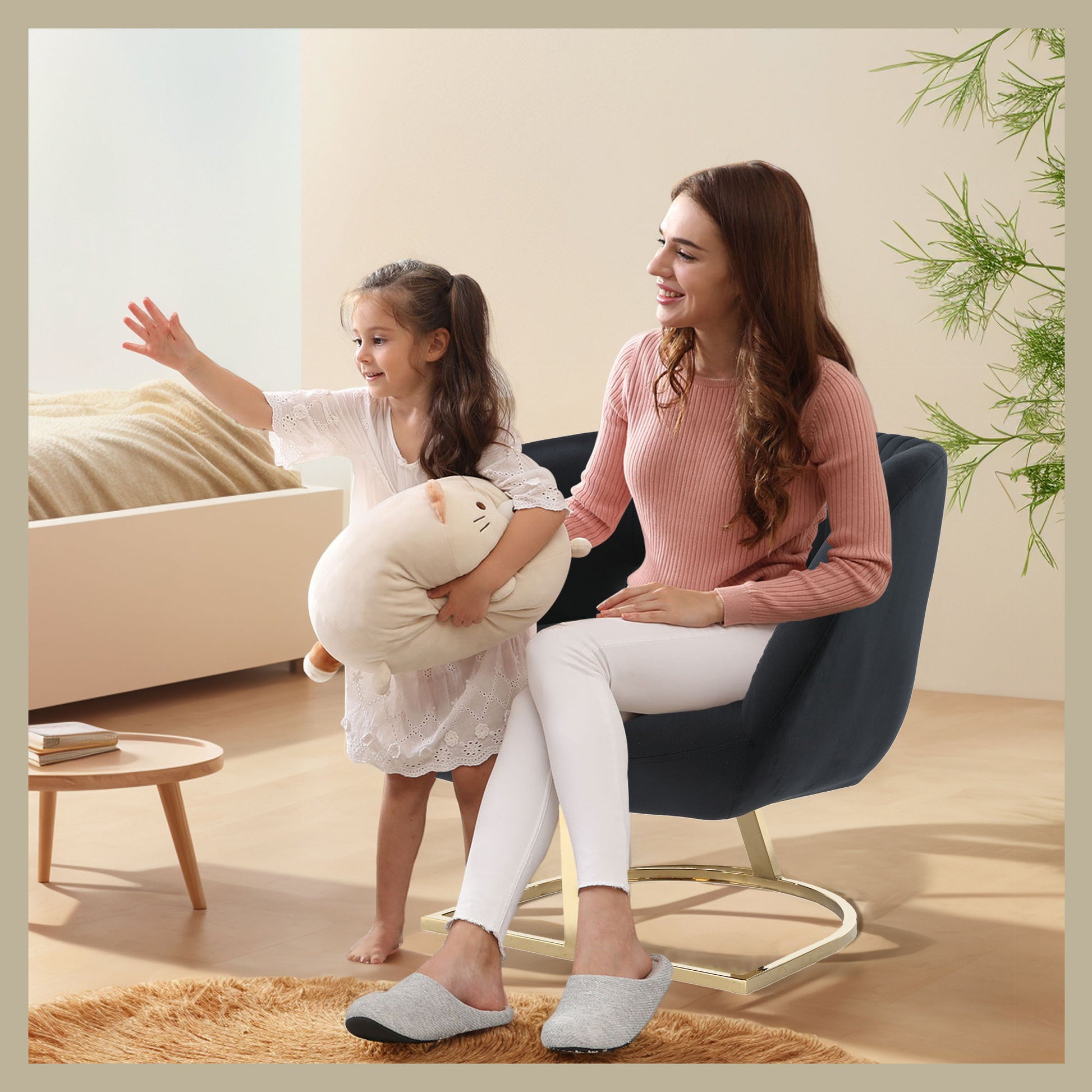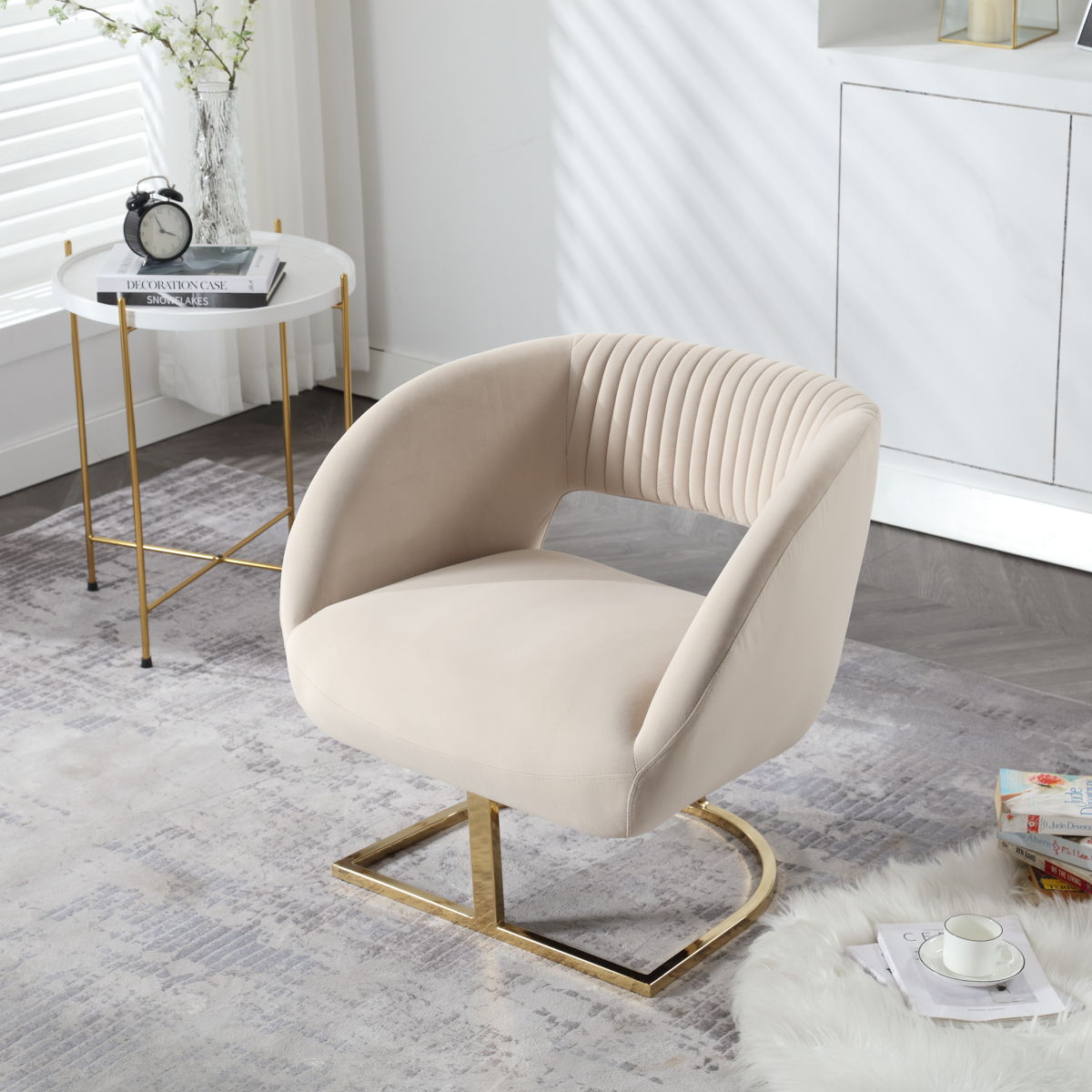Stylish Upholstered Chair: House hold upholstered living room chair in textured velvet fabric. Versatile Accent Piece: Metal stand accent chair adds style and functionality to any space. Compact Packaging: Chair ships in a convenient size of 29.13*26.97*20.08.