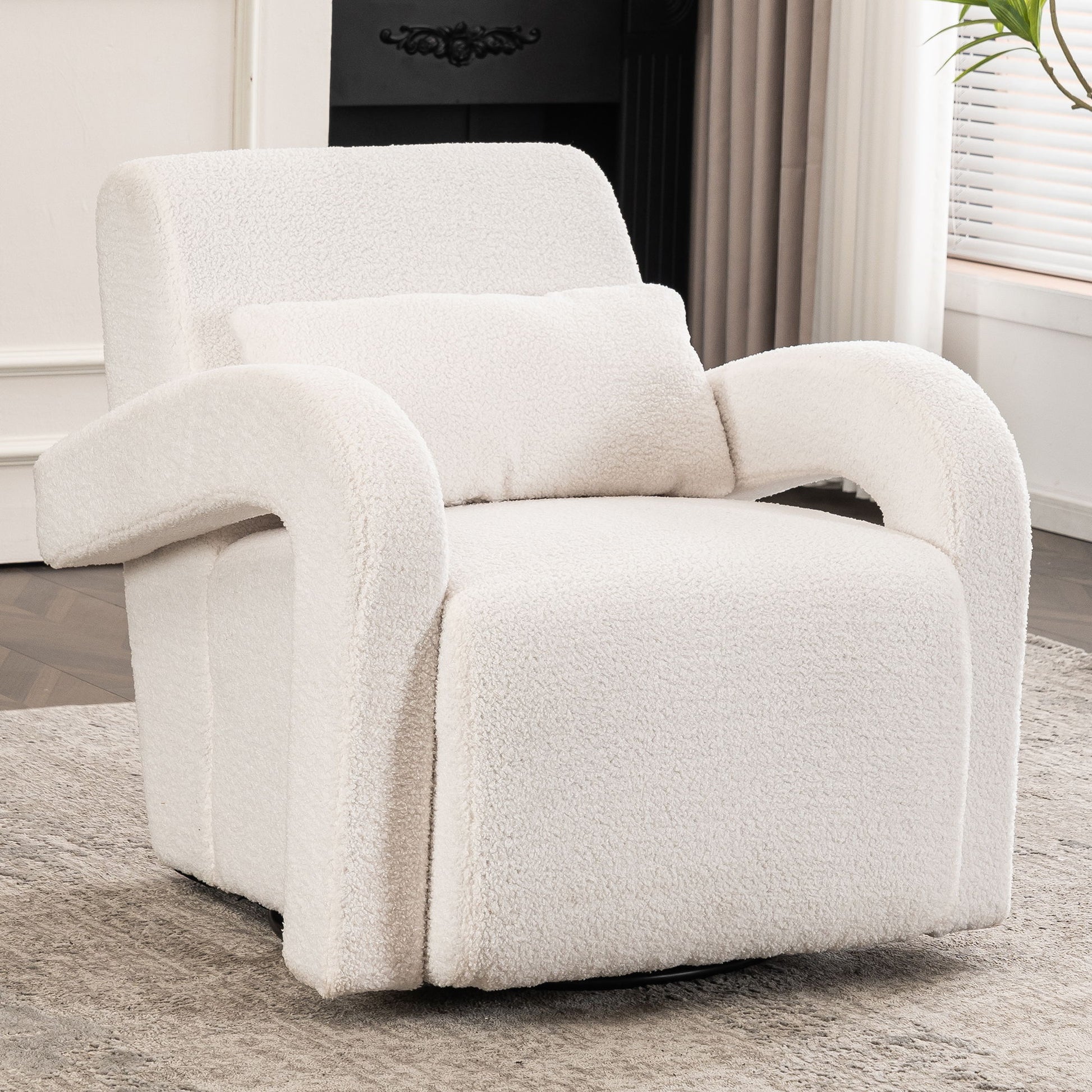 Cozy Teddy Fabric Armchair, Modern Sturdy Lounge Chair With Curved Arms And Thick Cushioning For Plush Comfort - White