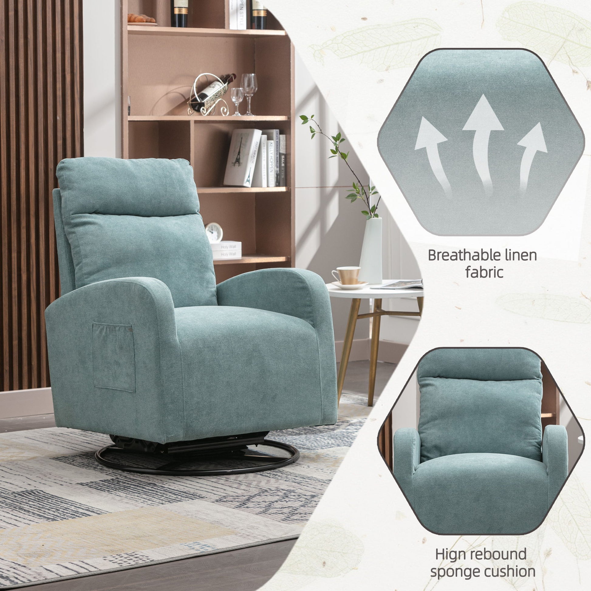 Jiada - Upholstered Swivel Glider Rocking Chair For Nursery, Modern Style One Left Bag - Light Blue