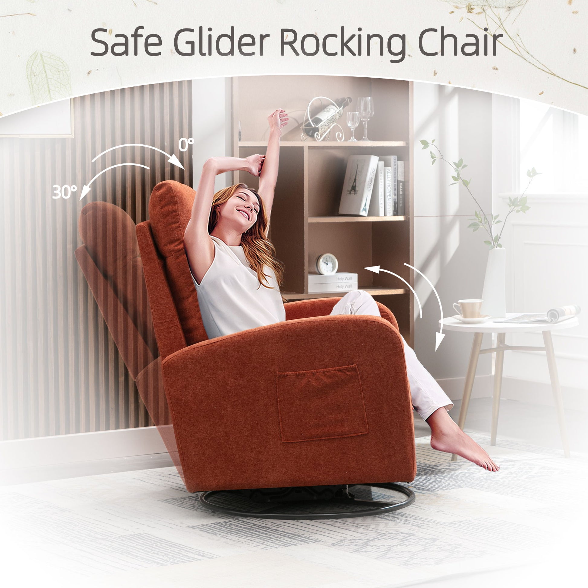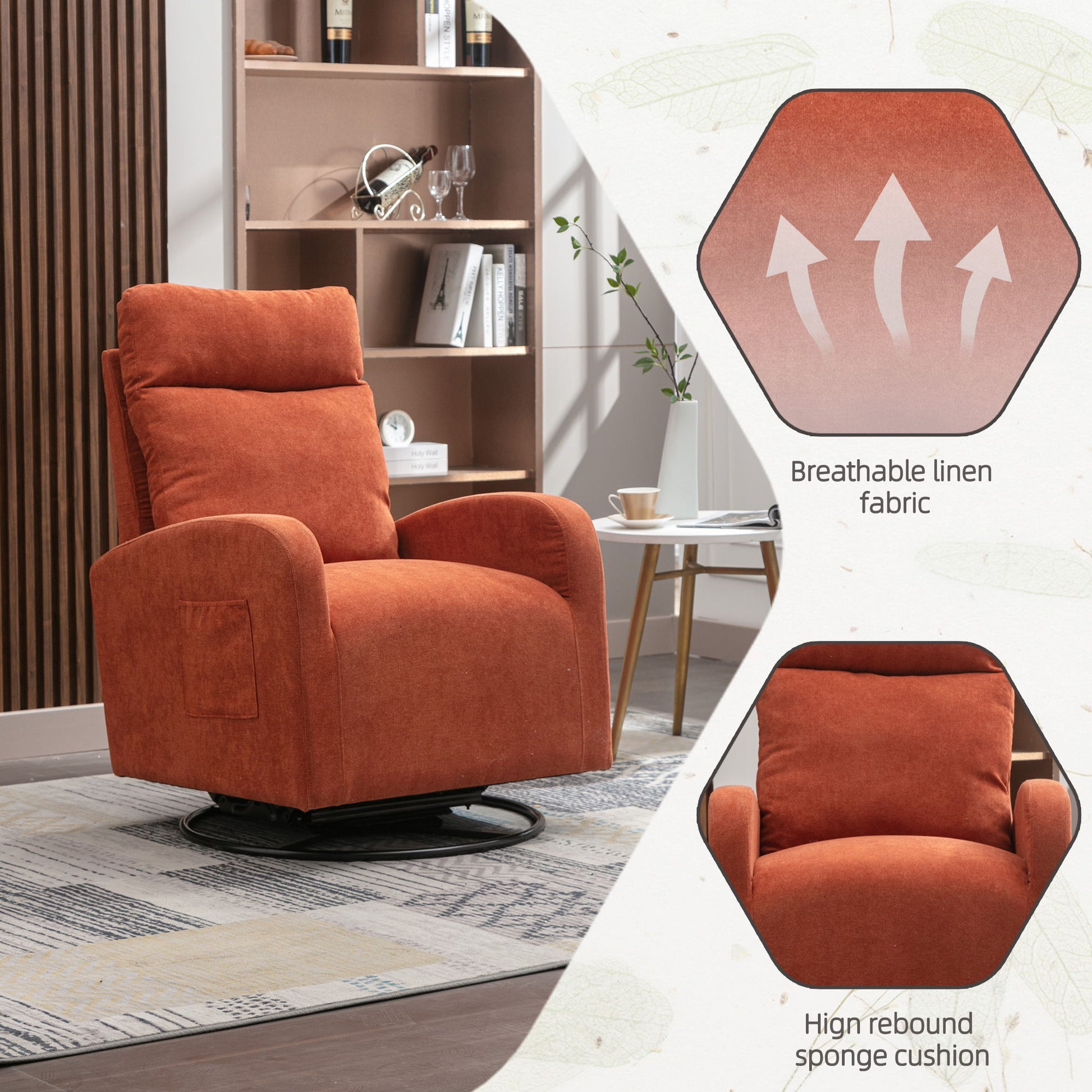 Jiada - Upholstered Swivel Glider Rocking Chair For Nursery, Modern Style One Left Bag - Orange
