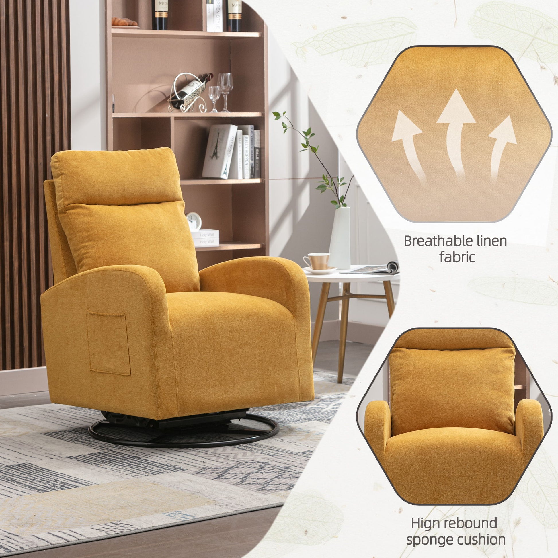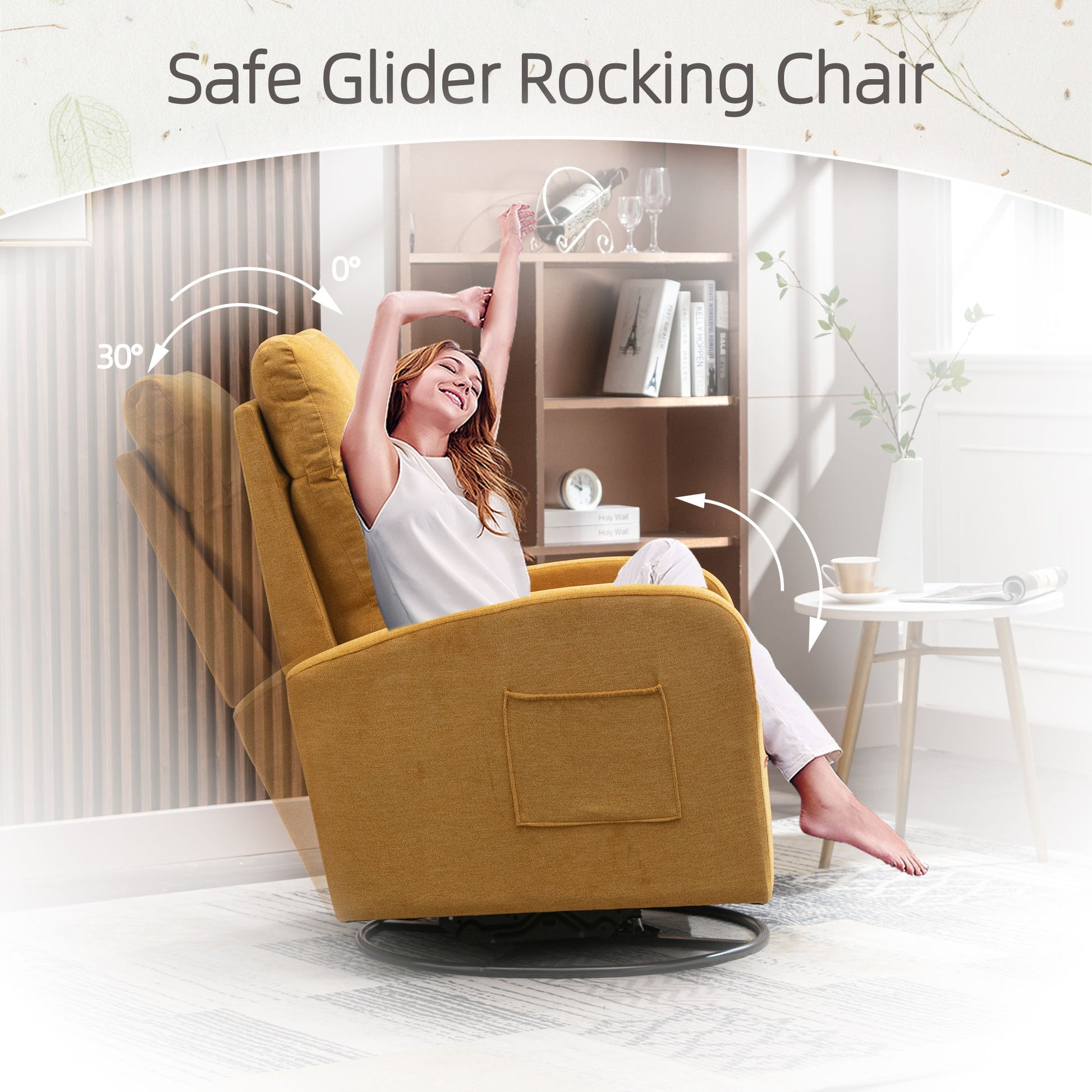 Upholstered Swivel Glider, Rocking Chair For Nursery Modern Style One Left Bag - Yellow
