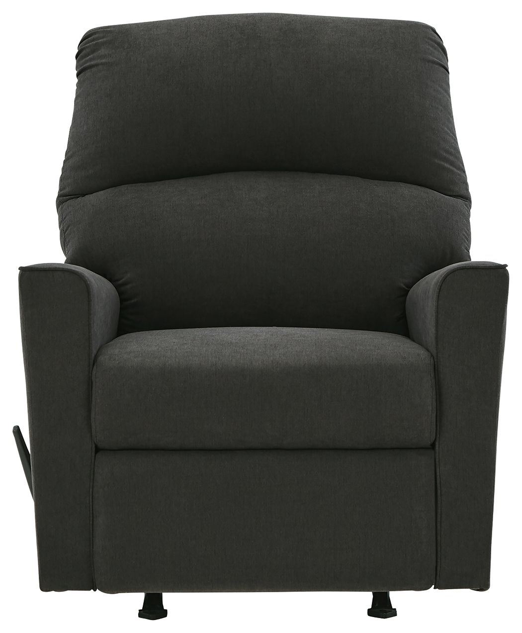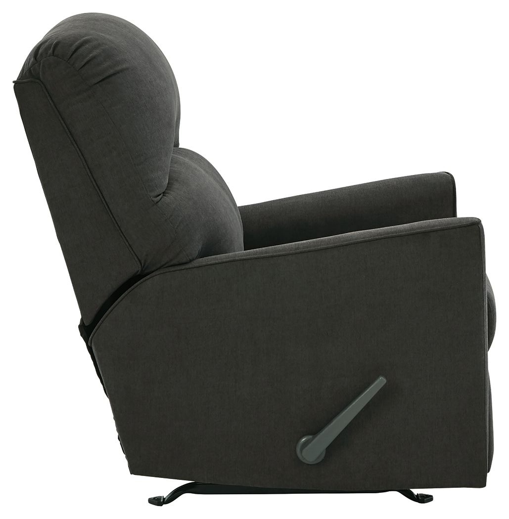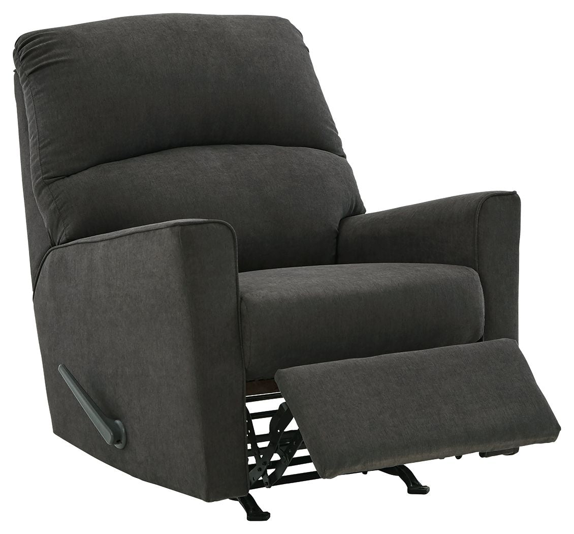 This rocker recliner sets the foundation for all proclaimed casually cool spaces. Adorned in a soft microfiber upholstery, it features track arms and a welted seat cushion. A gentle rocking motion perfects the laid-back vibe.