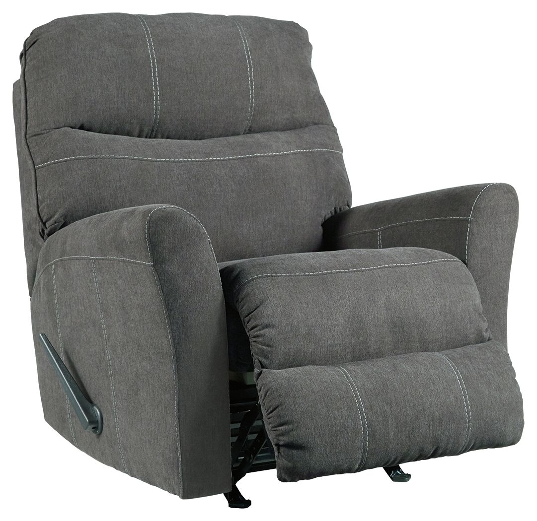 Destination: relaxation oasis. Elevate your design aesthetic with this rocker recliner. Plush yet structured cushioning packed with metro modern flair, this recliner is where sophisticated style meets everyday comfort. Recline in infinite positions of soft comfort with one pull.