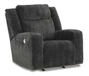 Ideal for those who seek synergy of form and function, this rocker recliner is made for everyday indulgence. Its motion features are decidedly modern; the upholstery velvety soft. A versatile, dark neutral hue takes you back to style basics. Track arms frame the chunky profile, completing this relaxed approach to contemporary decor.