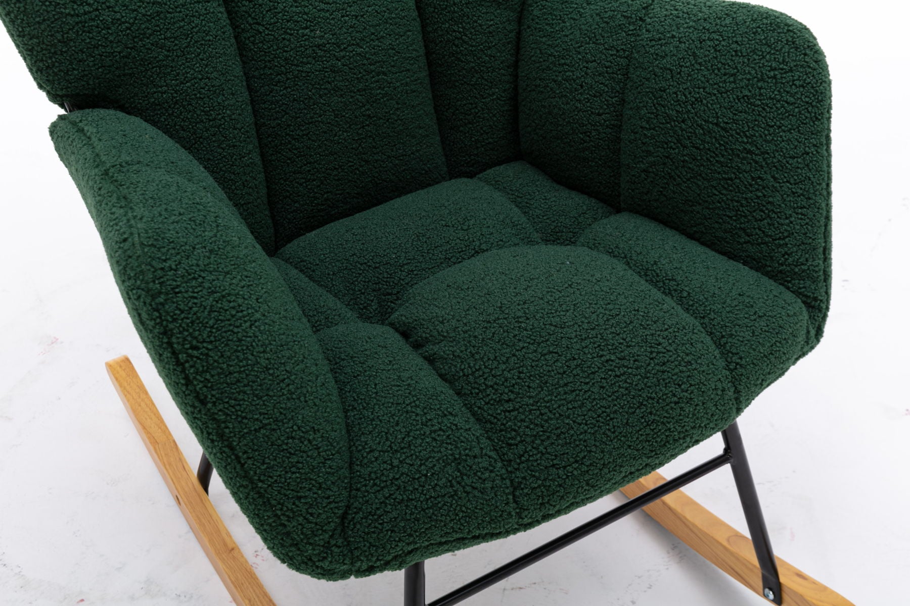 Mid Century Modern Teddy Fabric Tufted Upholstered Rocking Chair Padded Seat For Living Room Bedroom - Dark Green