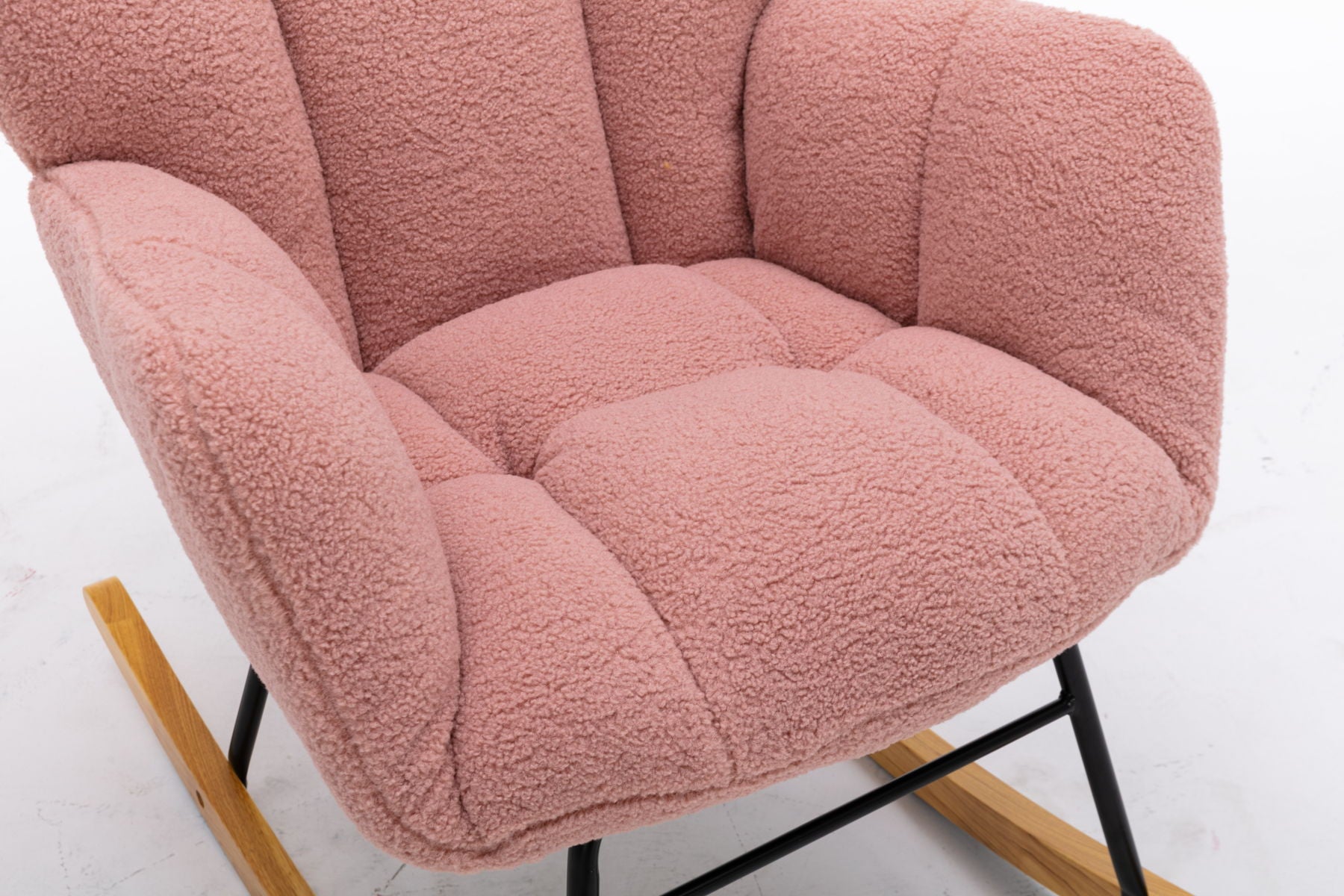 Mid Century Modern Teddy Fabric Tufted Upholstered Rocking Chair Padded Seat For Living Room Bedroom - Pink