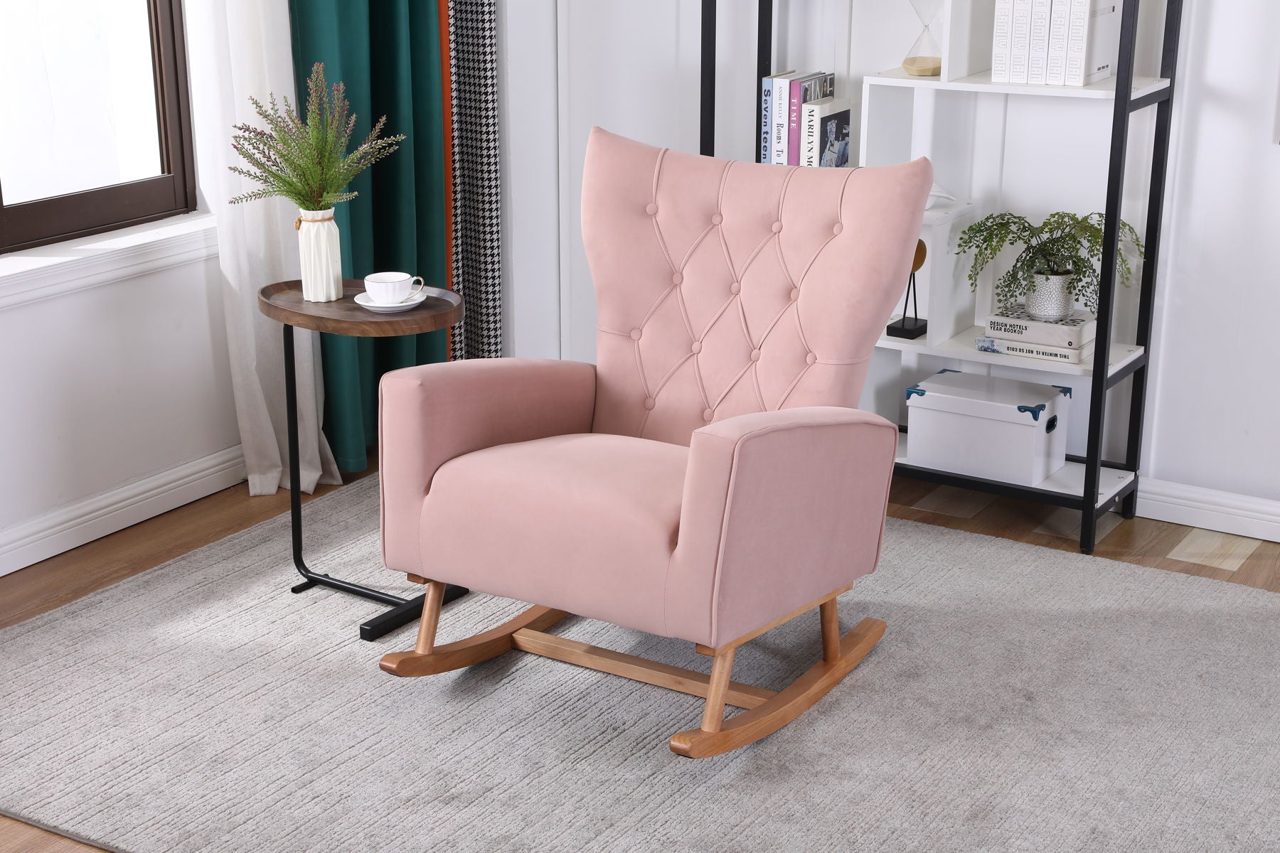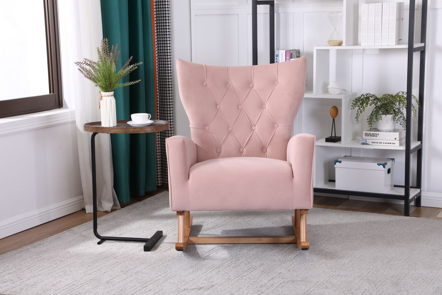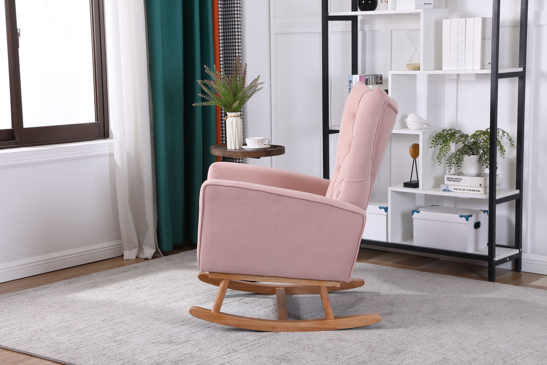 33.5" Baby Room High Back Rocking Chair Nursery Chair, Comfortable Rocker Fabric Padded Seat, Modern High Back Armchair - Pink