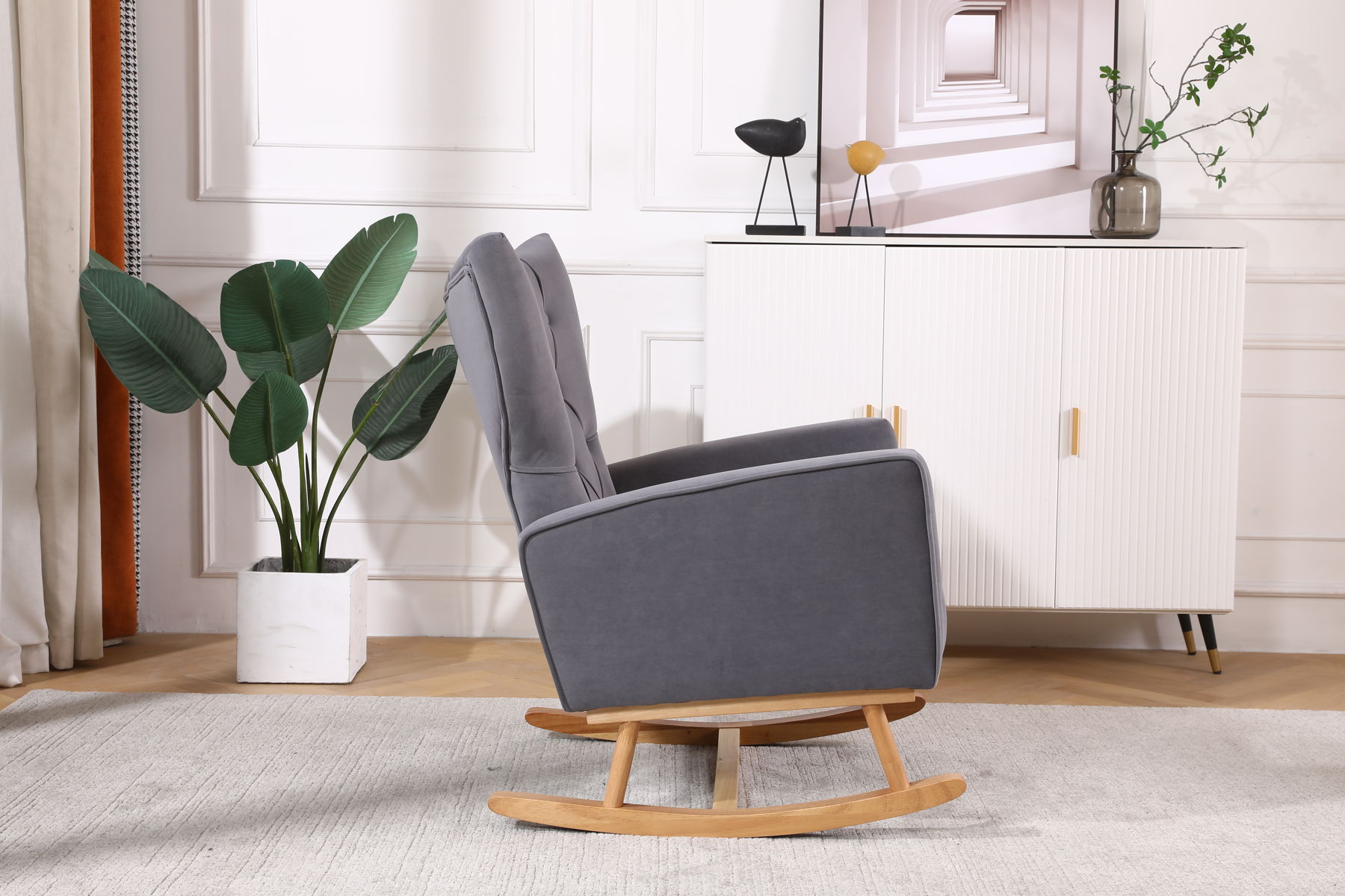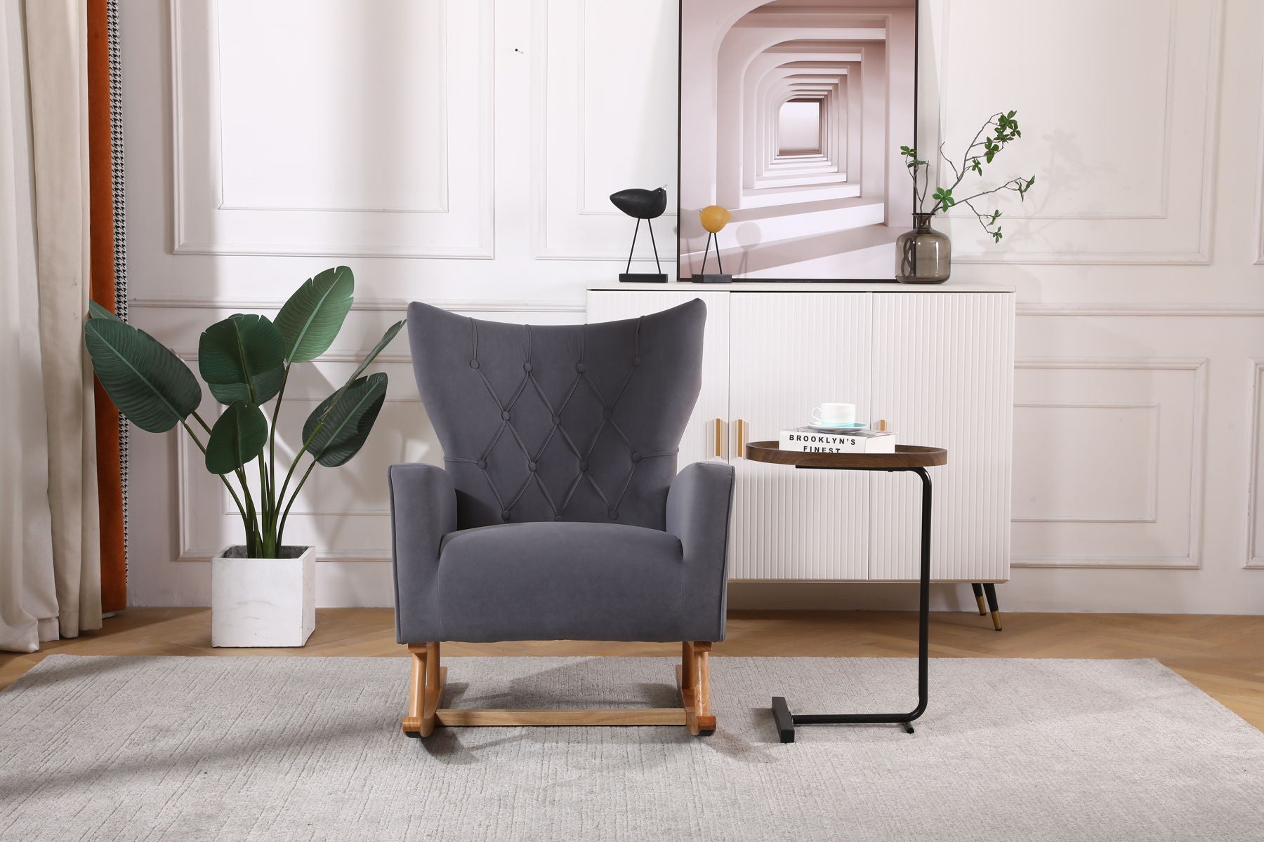 Mid-Century Modern Velvet Upholstered Rocking Chair Padded Seat For Living Room Bedroom - Gray