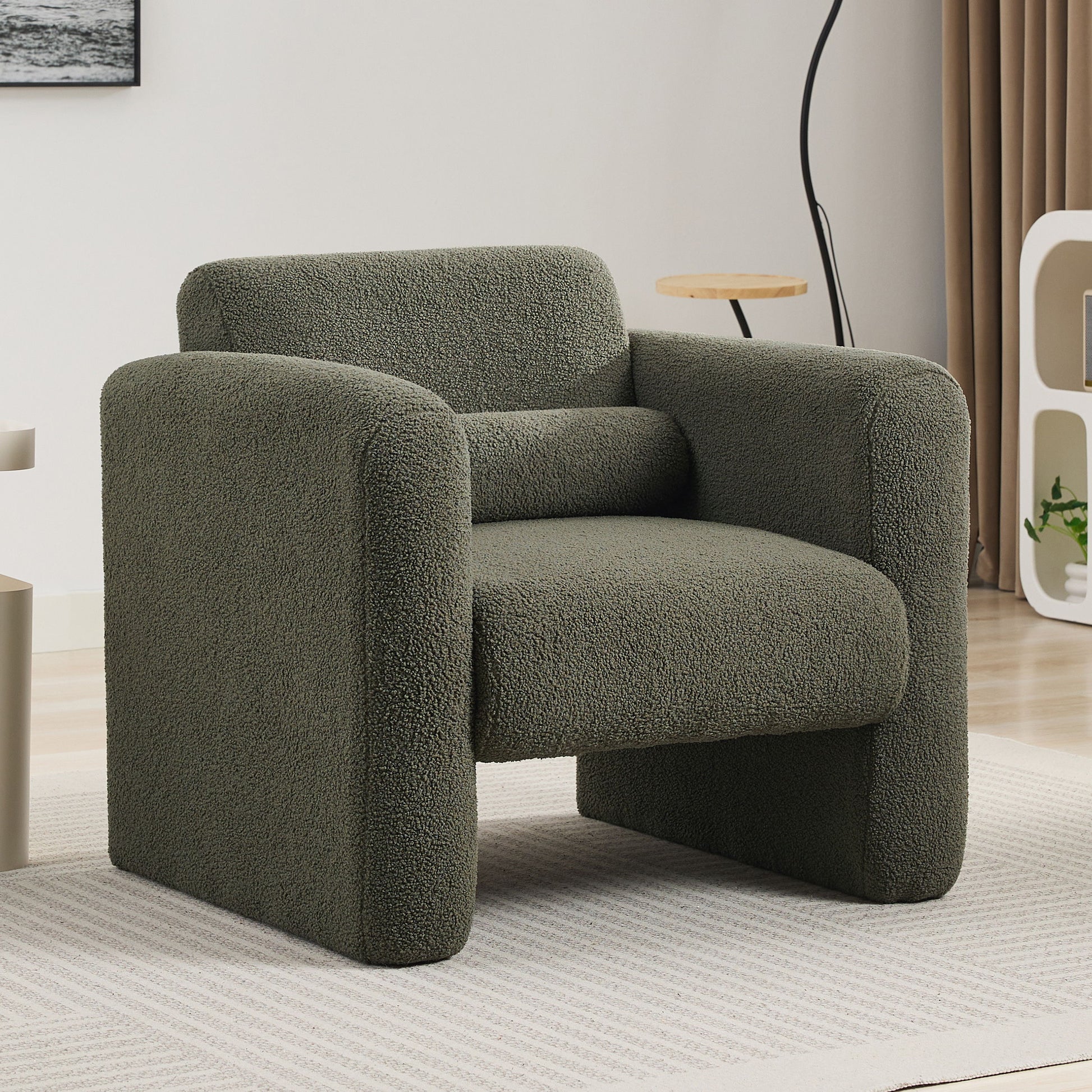 Modern Accent Chair Lambskin Sherpa Upholstered Comfy Reading Arm Chair Soft Padded Armchair With Back And Pillow For Living Room - Seaweed Green