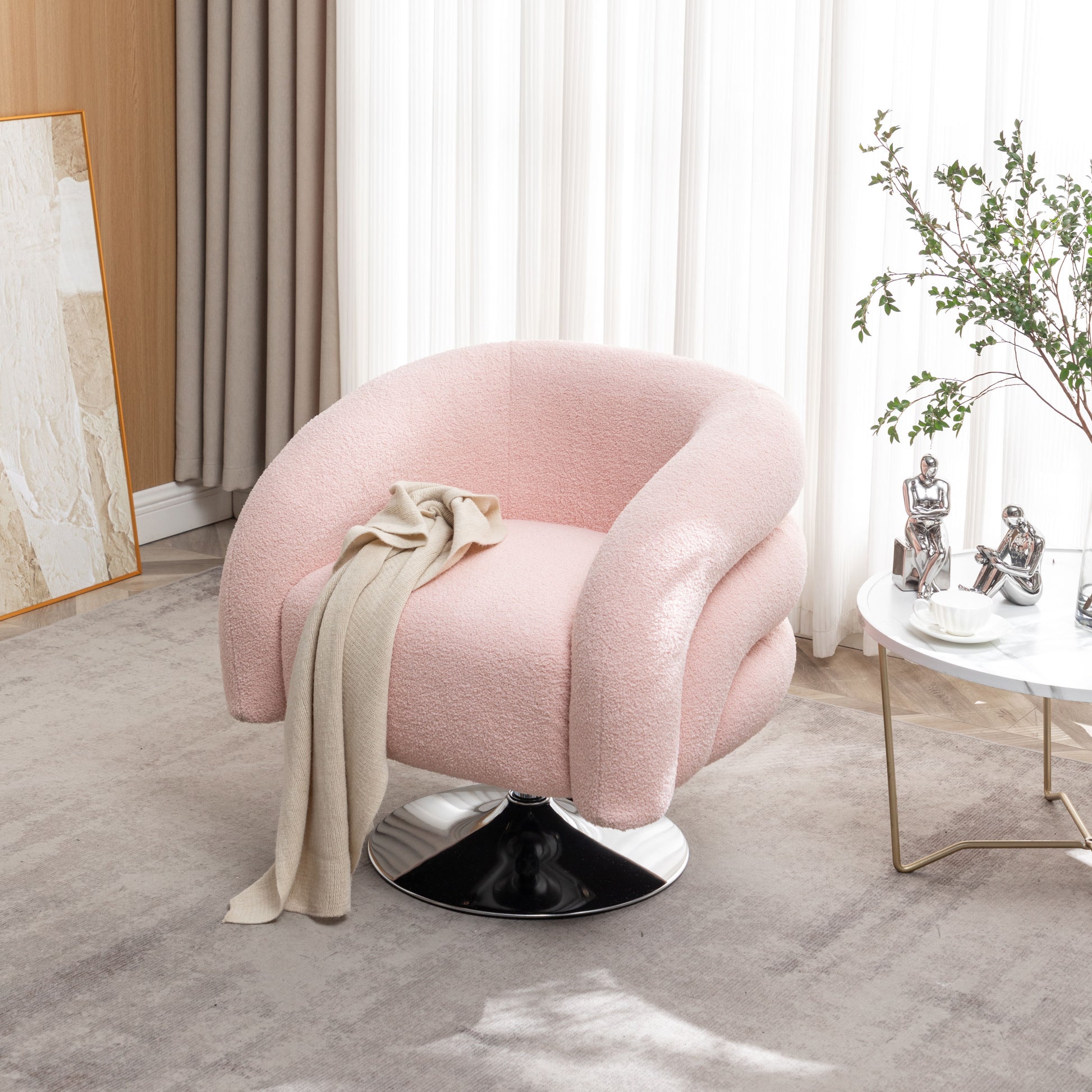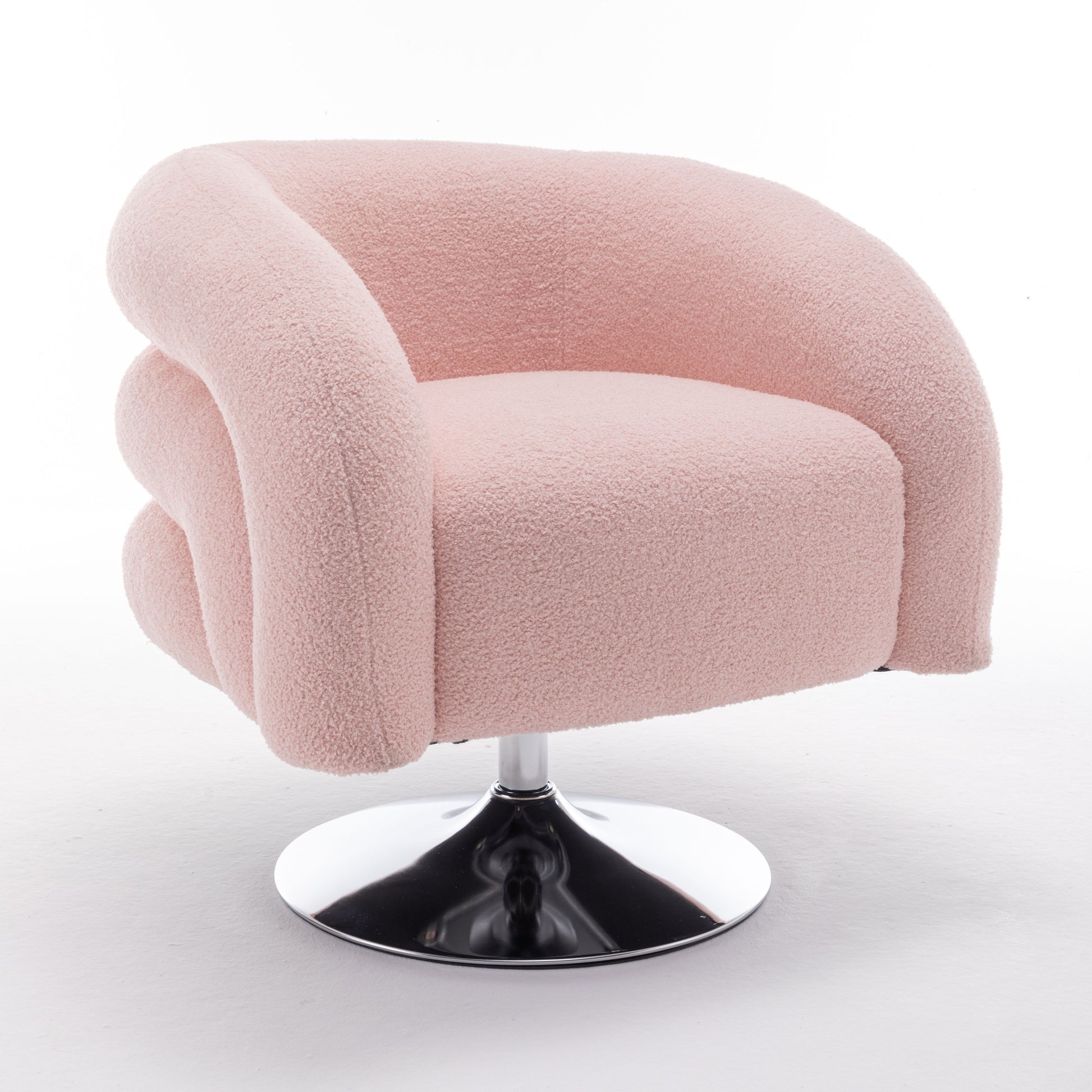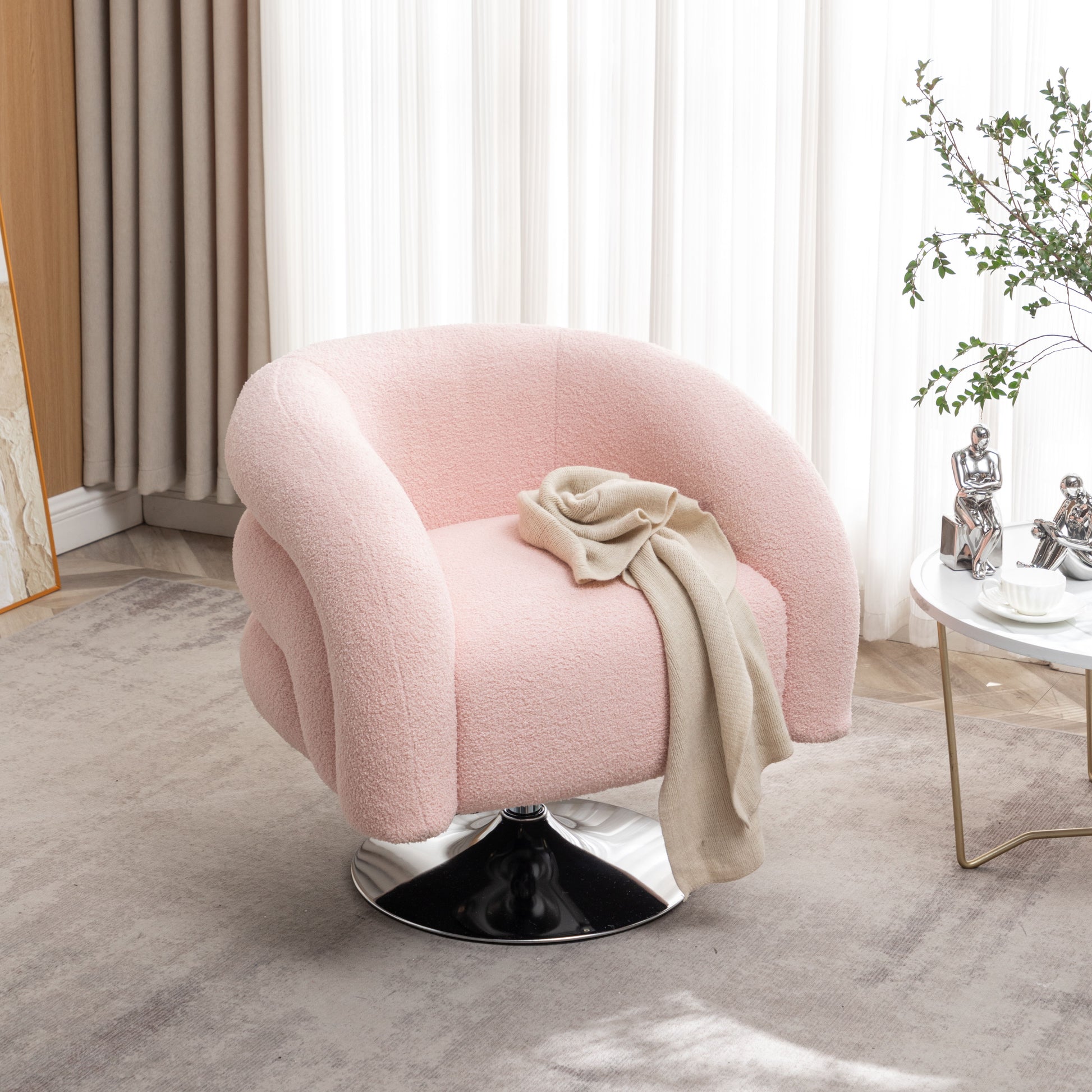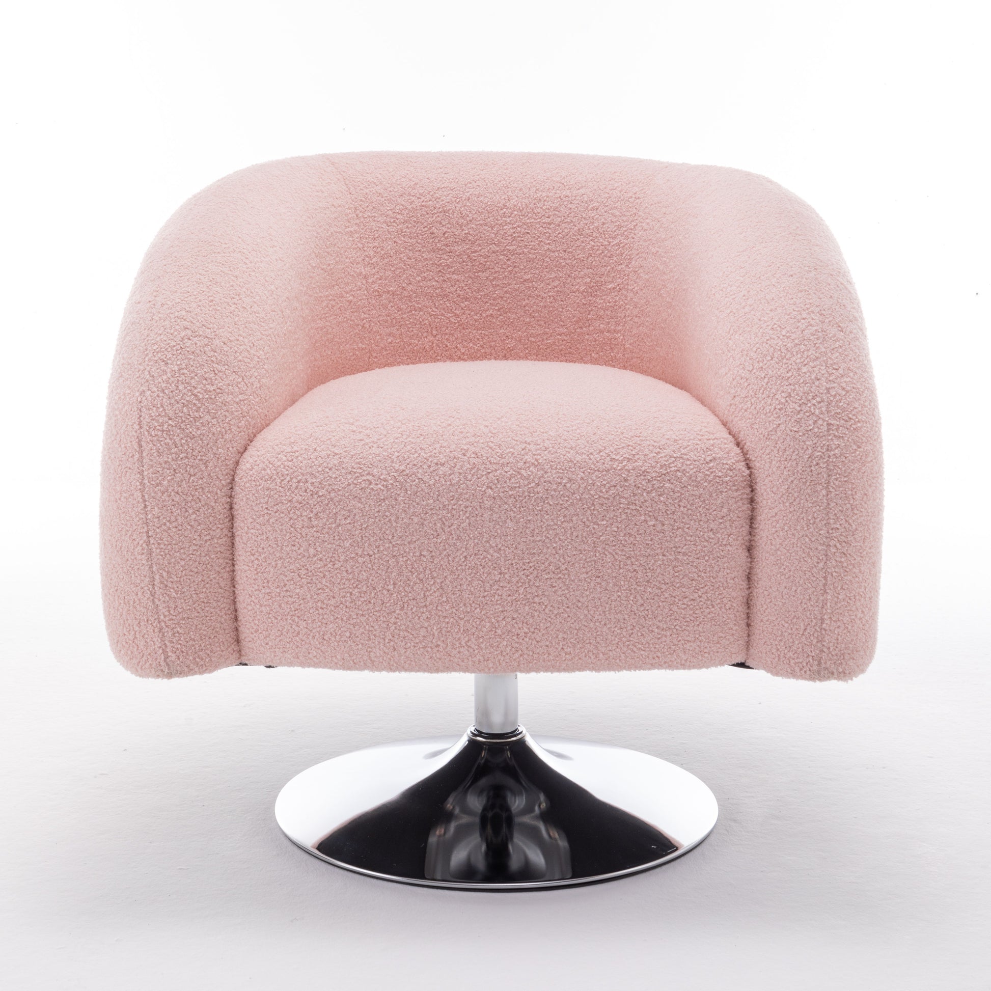 Modern Style Single Swivel Sofa Chair, Teddy Upholstered Single Sofa With Round And Fluffy Reading Chair, Suitable For Living Room, Bedroom, Corner - Pink