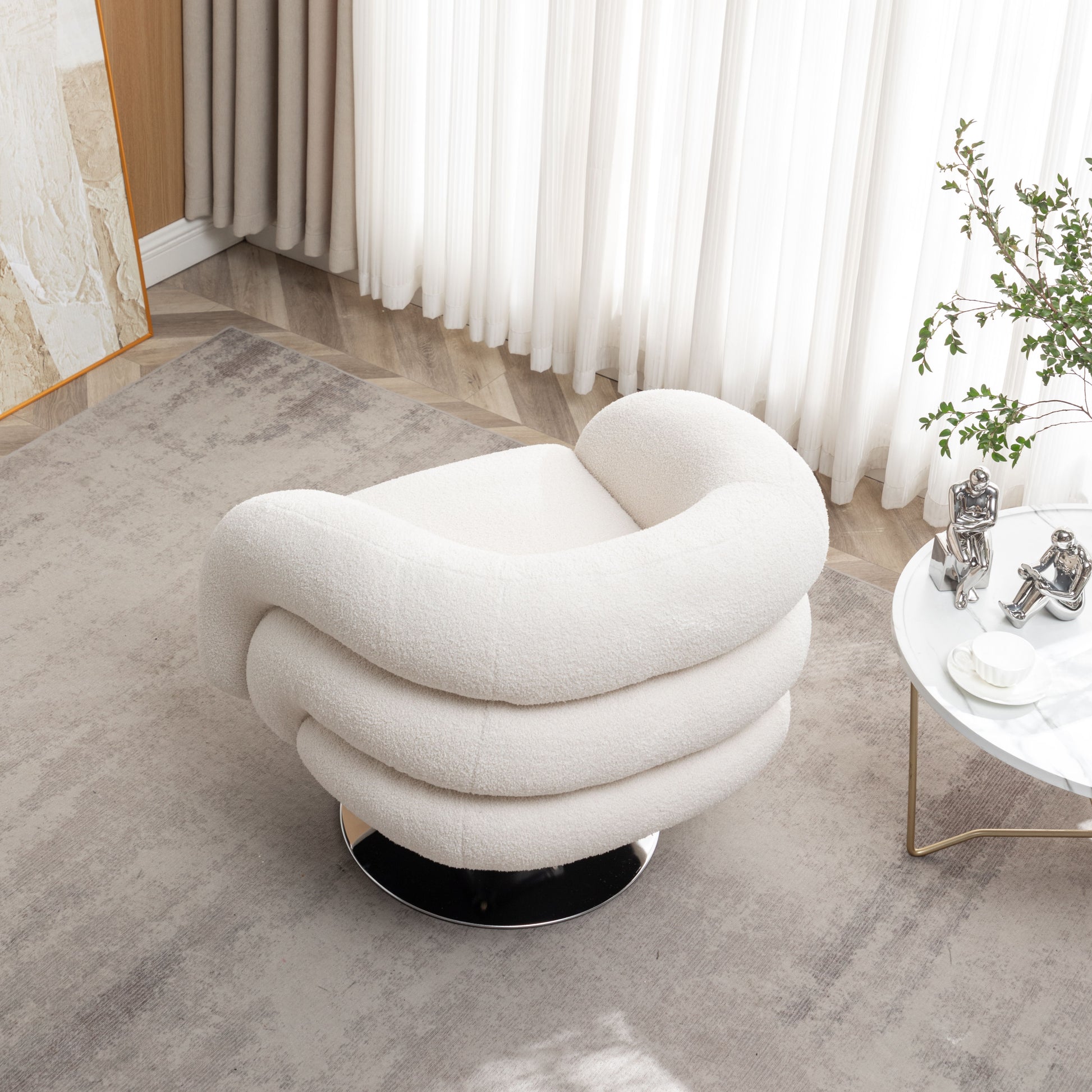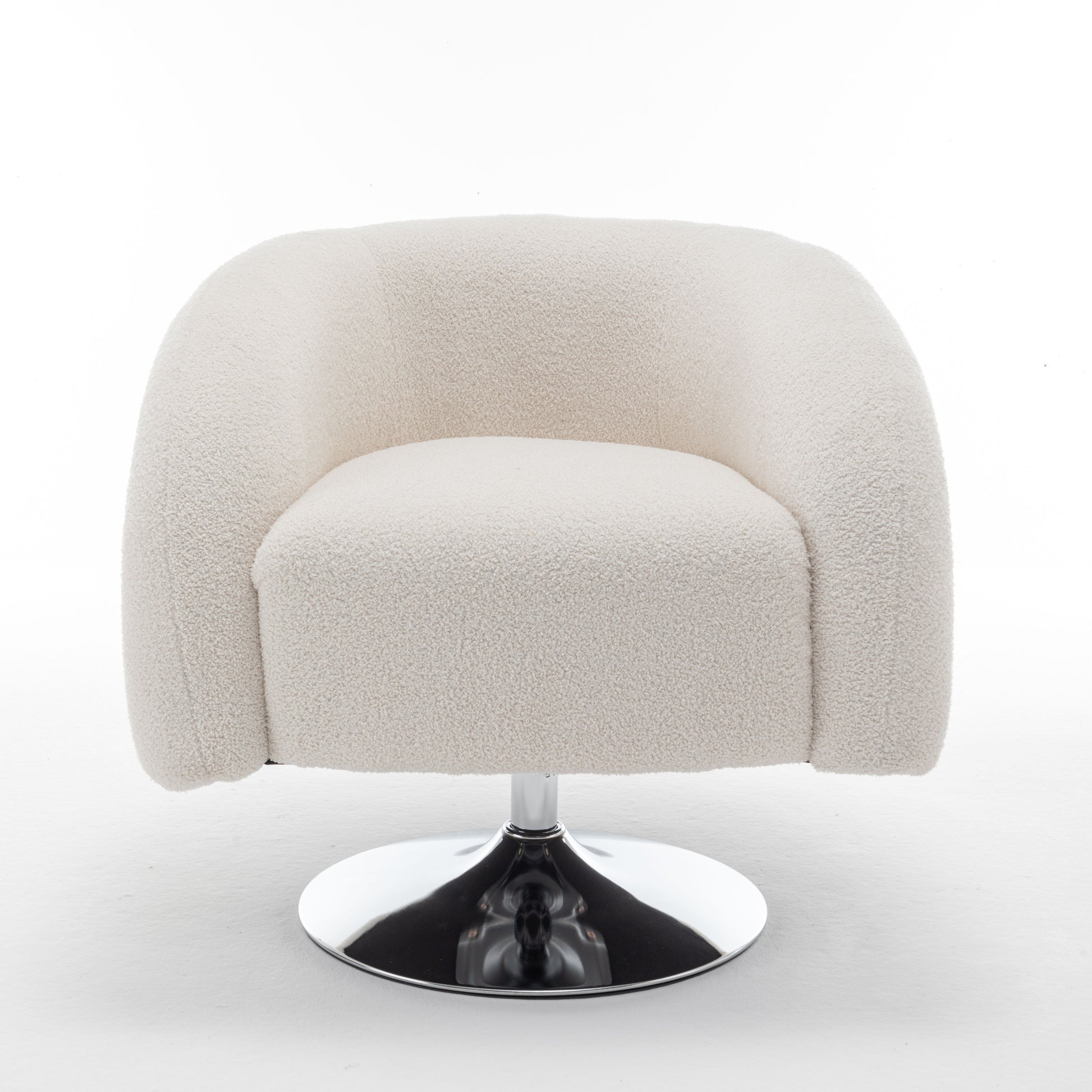 Modern Style Single Swivel Sofa Chair, Teddy Upholstered Single Sofa With Round And Fluffy Reading Chair, Suitable For Living Room - White