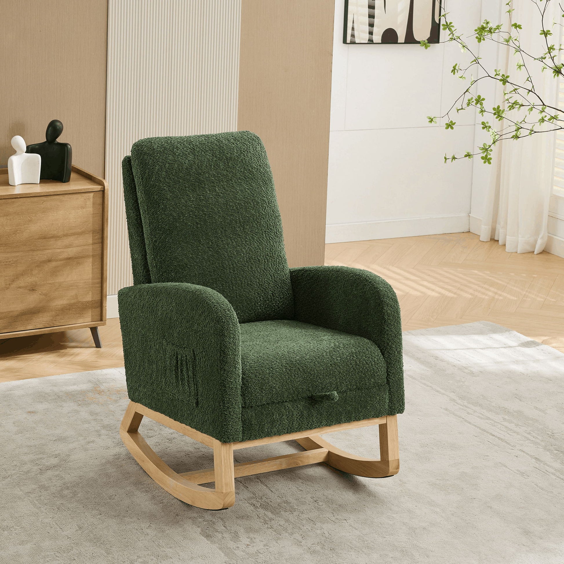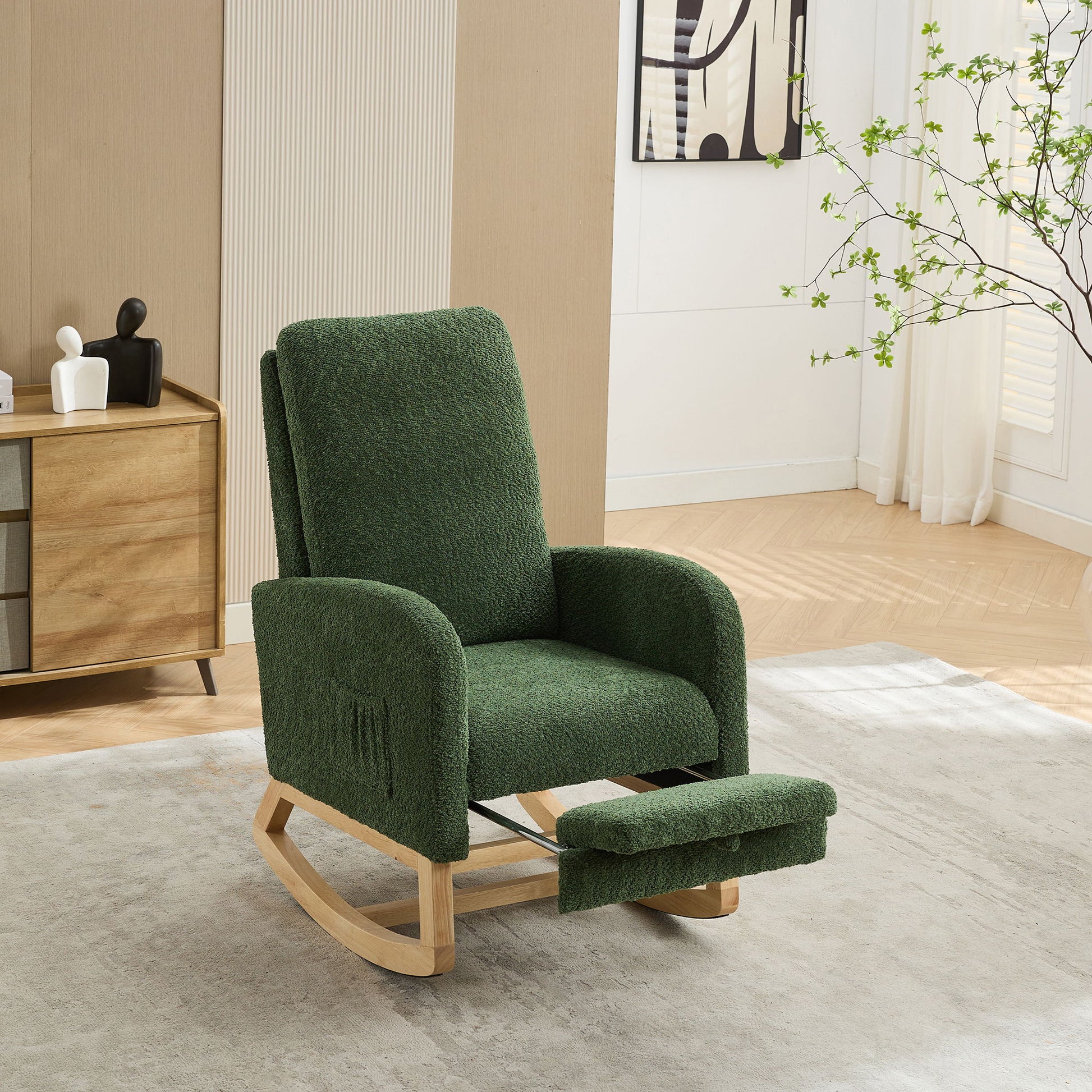 Rocking Chair For Nursery, High Back Glider Chair With Retractable Footrest, Side Pocket, Rocking Accent Armchair With Rubber Wood Legs For Living Room / Bedroom - Green