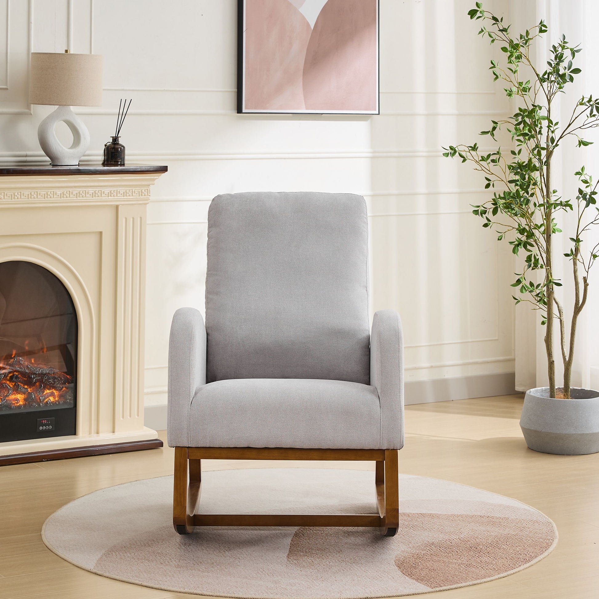 Rocking Chair For Nursery, Polyester Glider Chair With High Back And Side Pocket, Rocking Accent Armchair With Rubber Wood Legs For Living Room / Bedroom - Light Gray
