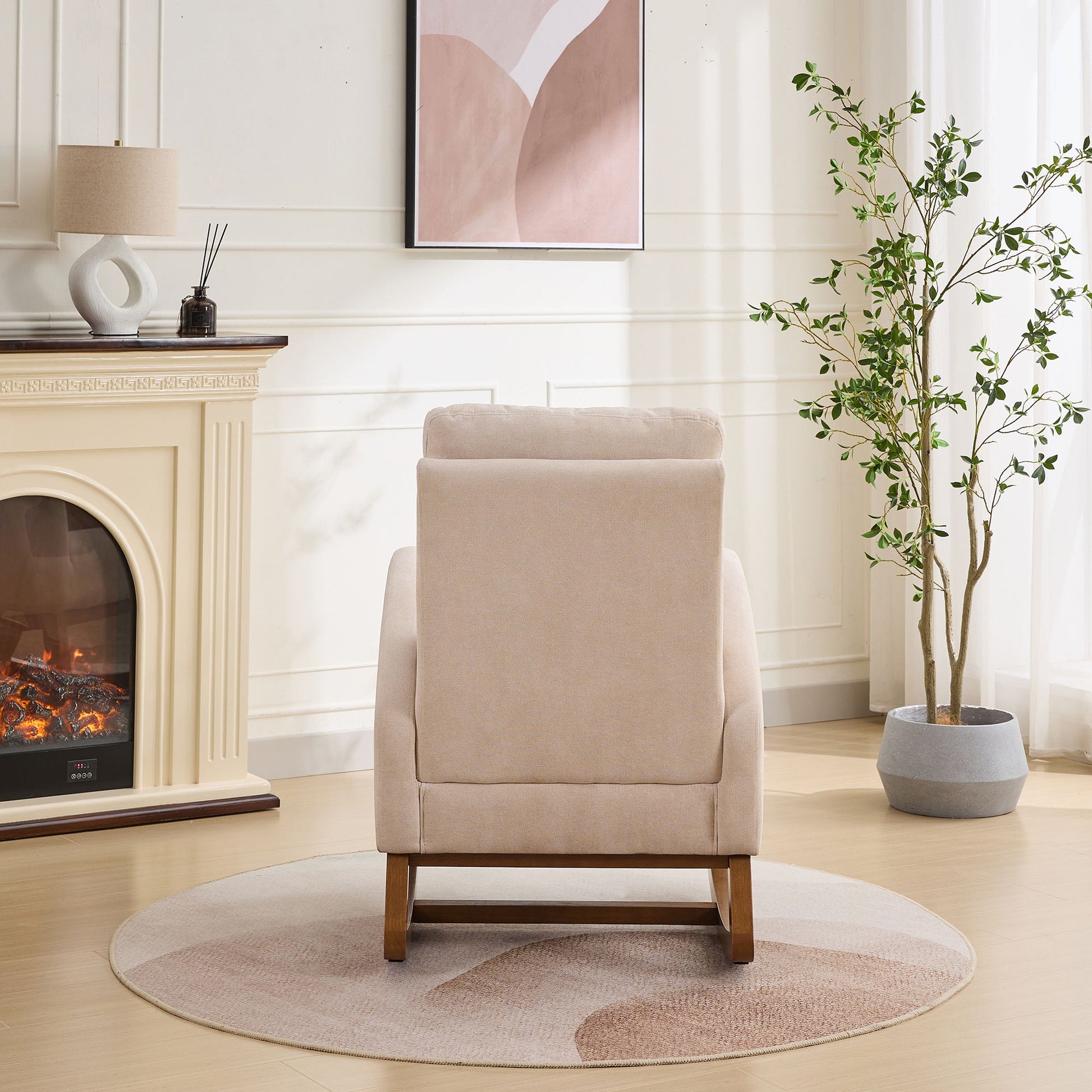Rocking Chair For Nursery, Polyester Glider Chair With High Back And Side Pocket, Rocking Accent Armchair With Rubber Wood Legs For Living Room / Bedroom - Beige