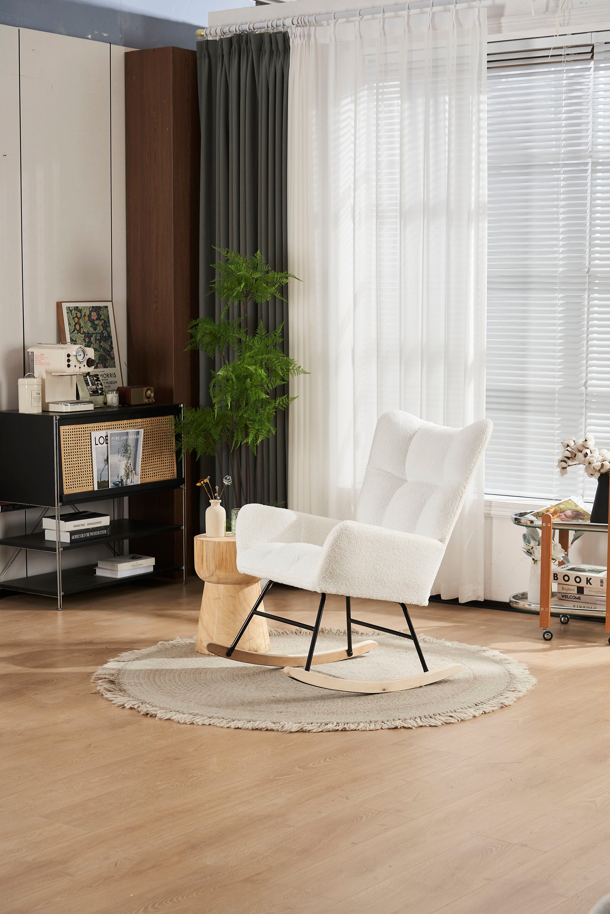 Rocking Chair Nursery, Solid Wood Legs Reading Chair With Teddy Fabirc Upholstered, Nap Armchair For Living Rooms, Bedrooms, Offices, Best Gift