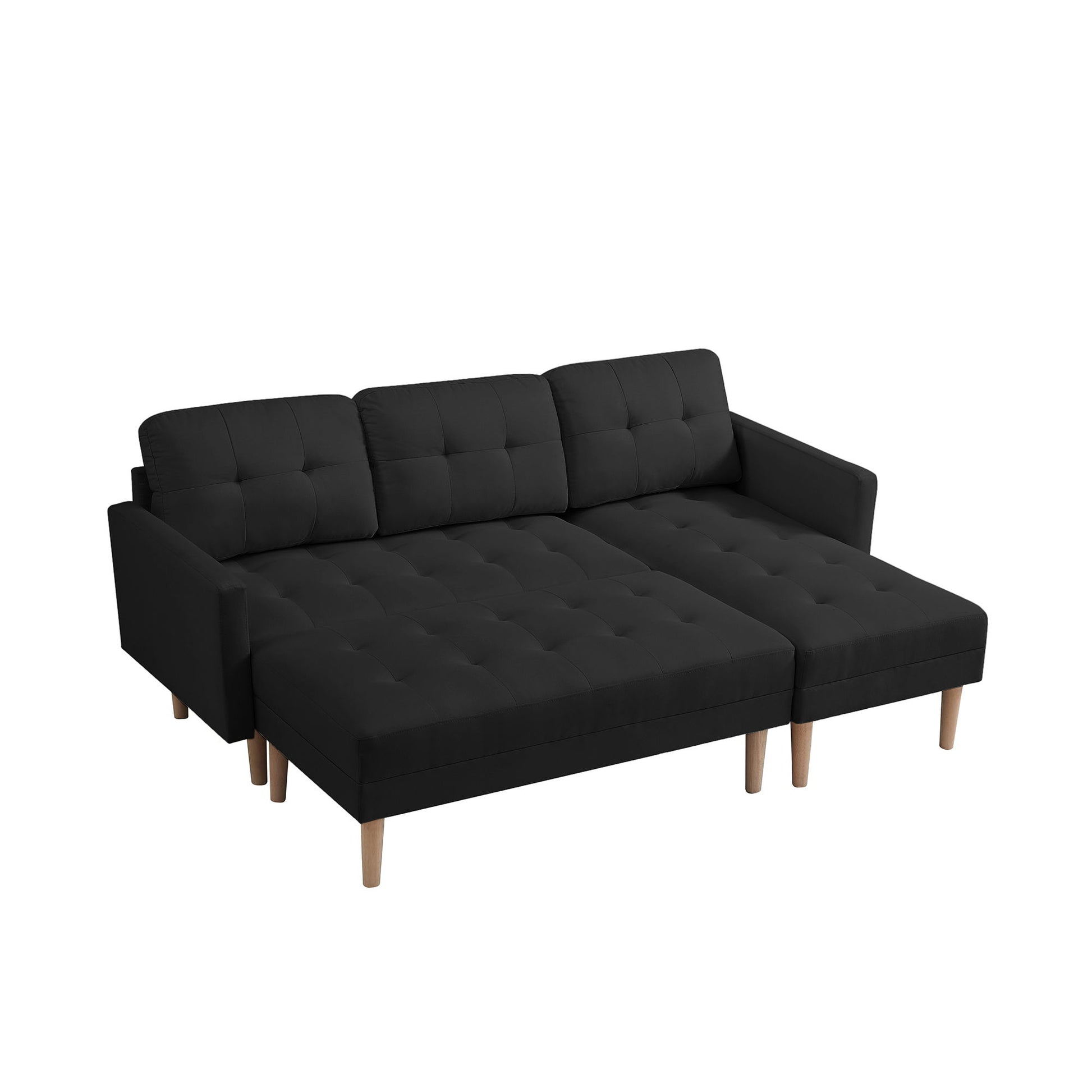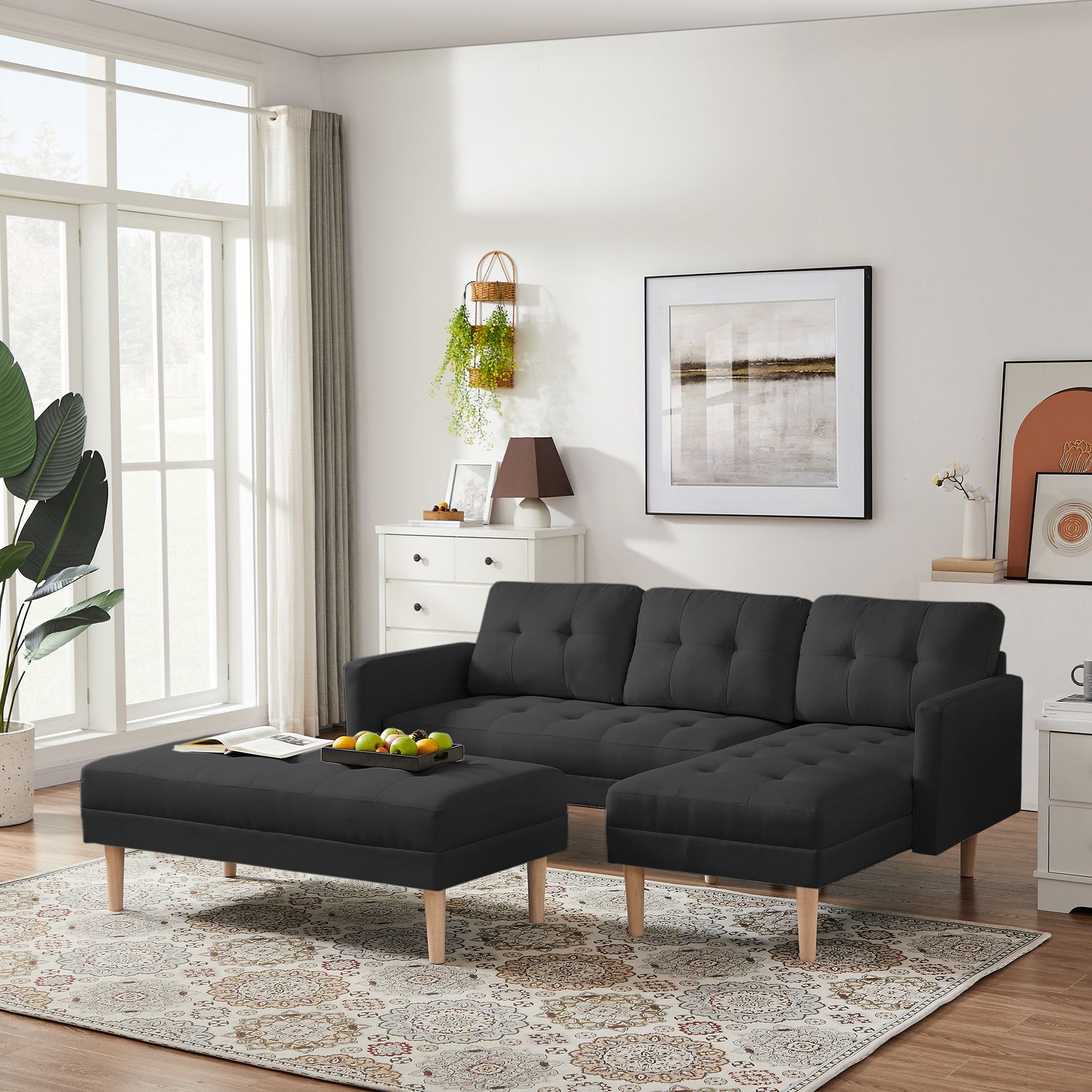 1.L-shape Sectional Sofa: This sofa is designed to fit well in any corner or small living room, with a foam-filled fabric for a soft feel. It can support up to 800 lbs after assembly and comes with an ottoman.2.Multi-functional Ottoman: The ottoman can serve as a place for magazines, pet food, and blankets. It can also be positioned against the sofa to create a sleeper bed, making it a versatile addition to your space.3.High Quality Construction: The solid frame and soft interior of the sectional sofa ensure both product quality and comfort. Stable solid legs material enhances the sofa's durability for long-term use.4.Easy Assembly: The package includes all necessary hardware, and no extra tools are required for assembly. Detailed instructions are provided to help you easily put the sofa together.5.Important Note: All legs, hardware, and sofa parts are stored inside the sofa bottom. You can access them by unzipping the zipper on the sofa bottom and removing all parts for assembly.