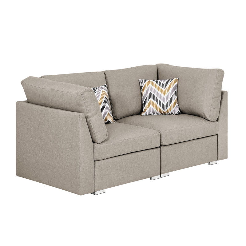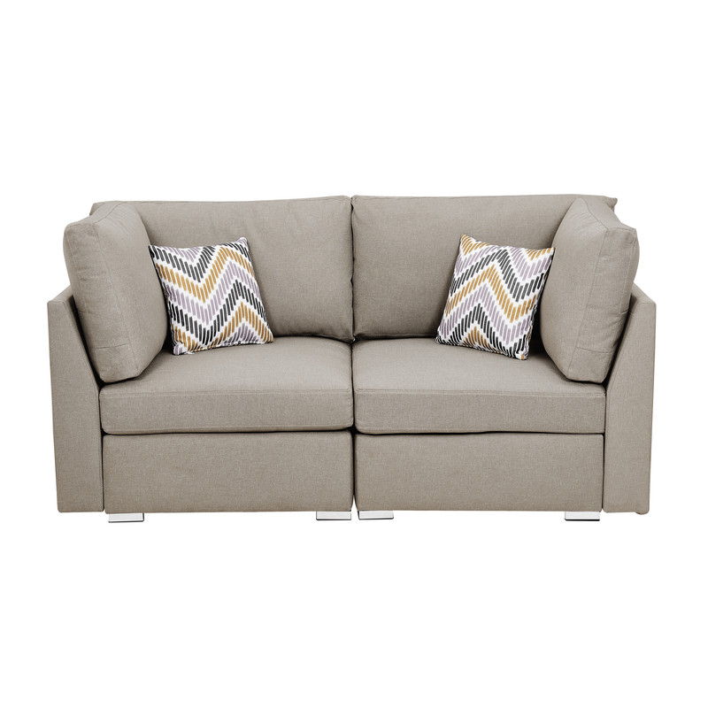 Amira - Fabric Loveseat Couch With Pillows - Beige