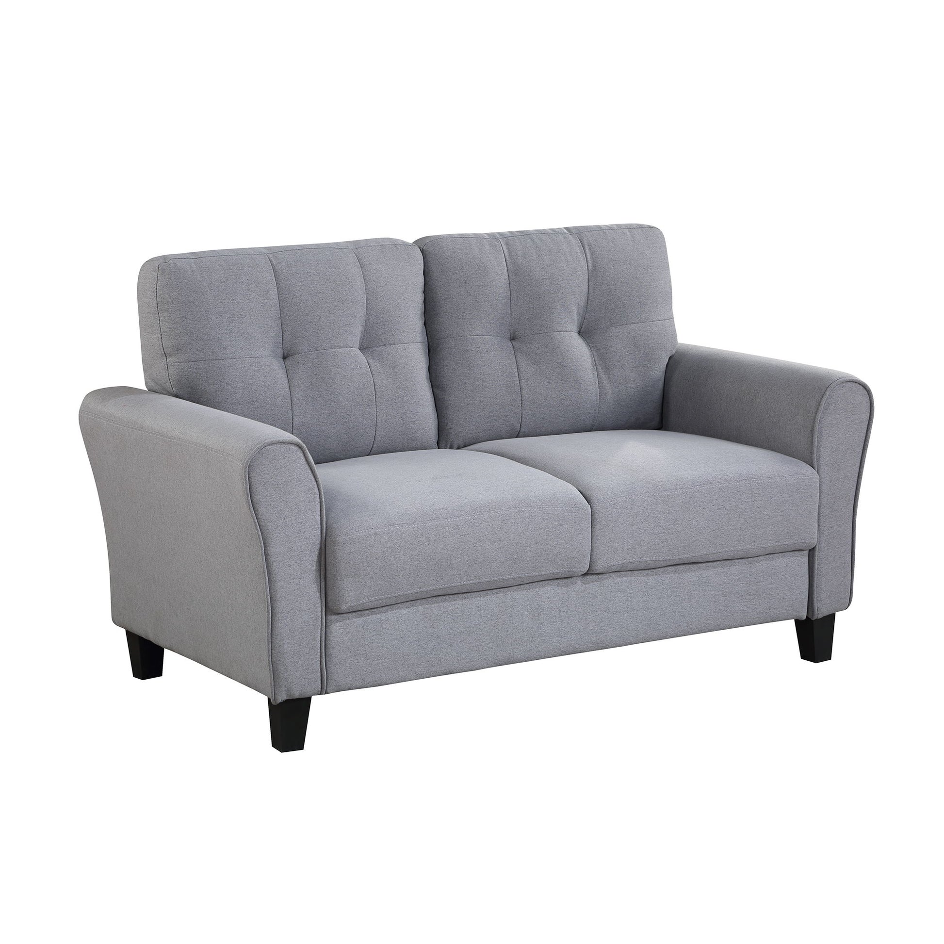 Modern Living Room Loveseat Linen Upholstered Couch Furniture For Home Or Office - Light Gray