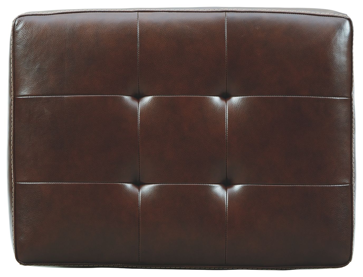 Tailor your space with the tidy structure of this ottoman. Decorative stitching and button tufting on the box cushion make for a very neat appearance. With real leather covering the top cushion'where it matters most this piece has skillfully matched leather elsewhere, so you won't get hemmed in by the price.