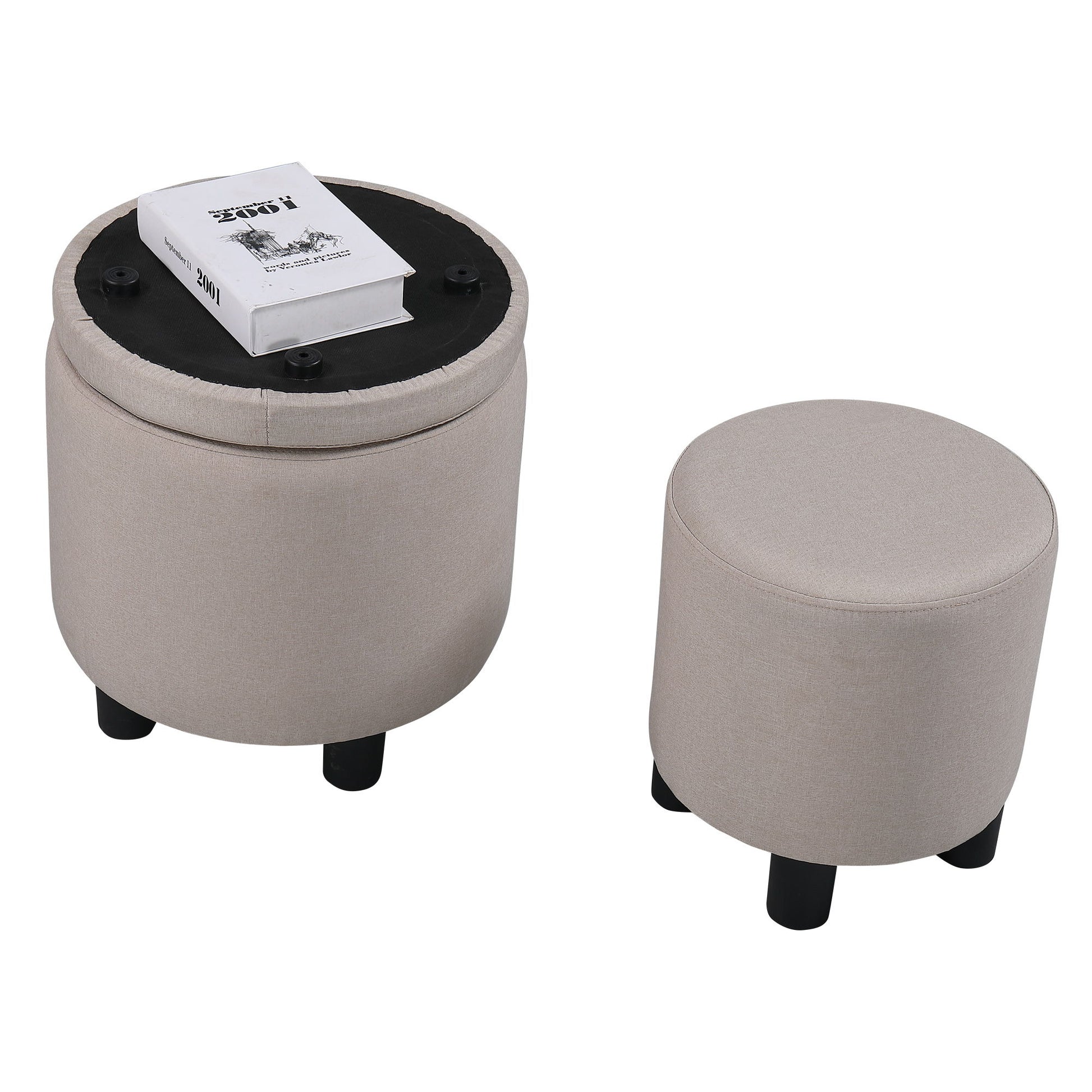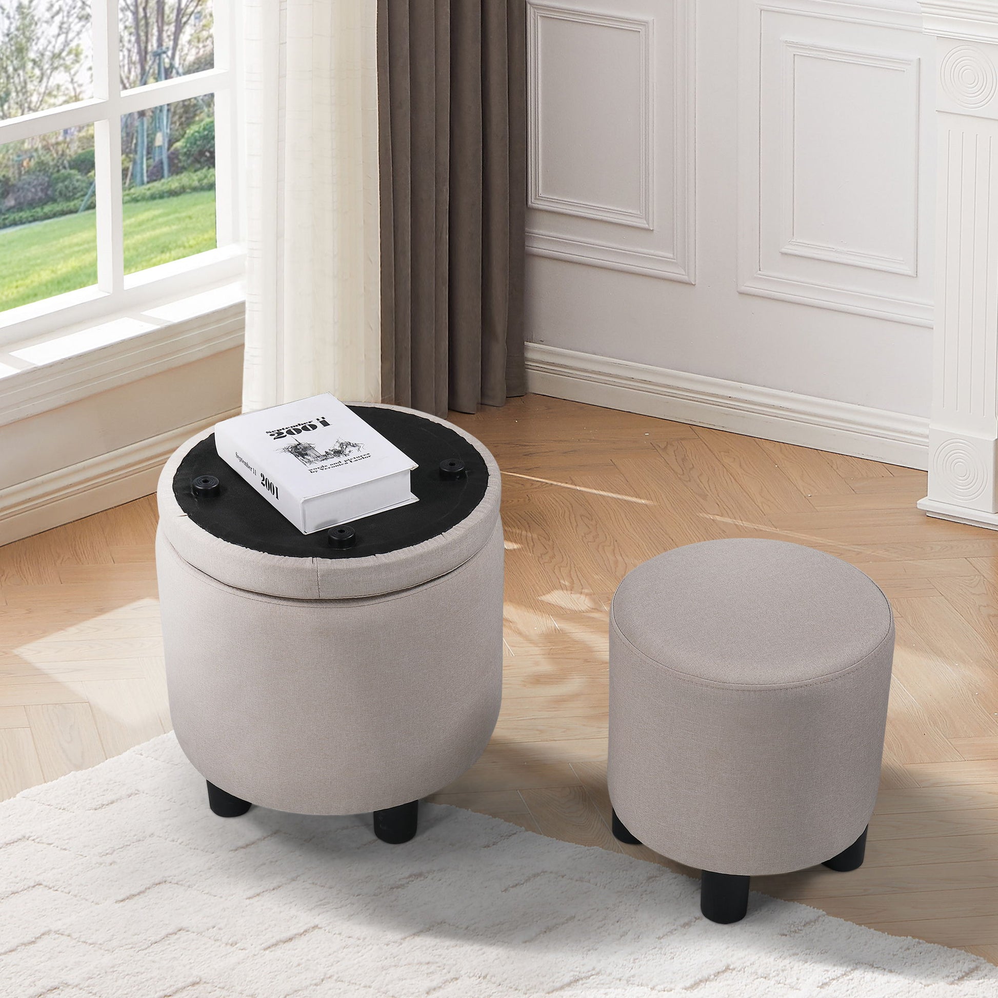Home Decor Upholstered Round Tufted Footrest 1+1 Ottoman, Ottoman With Storage For Living Room & Bedroom, Decorative Home Furniture - Beige