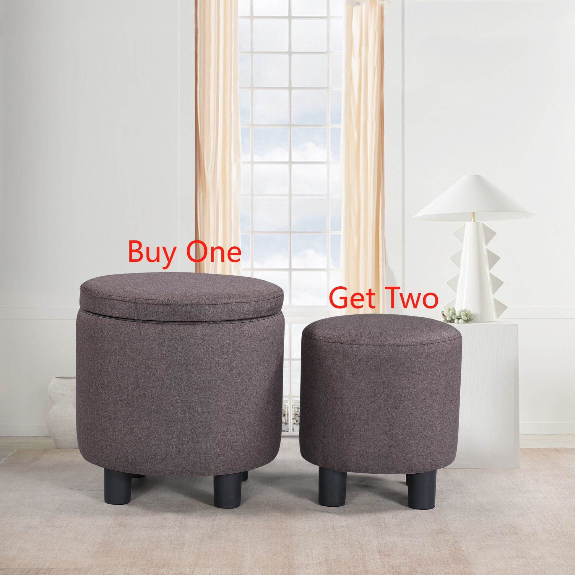 Home Decor Upholstered Round Tufted Footrest 1+1 Ottoman, Ottoman With Storage For Living Room & Bedroom, Decorative Home Furniture - Brown