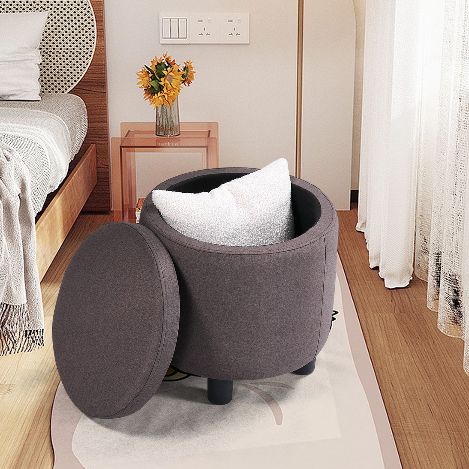 Home Decor Upholstered Round Tufted Footrest Ottoman, Ottoman With Storage For Living Room & Bedroom, Decorative Home Furniture - Brown