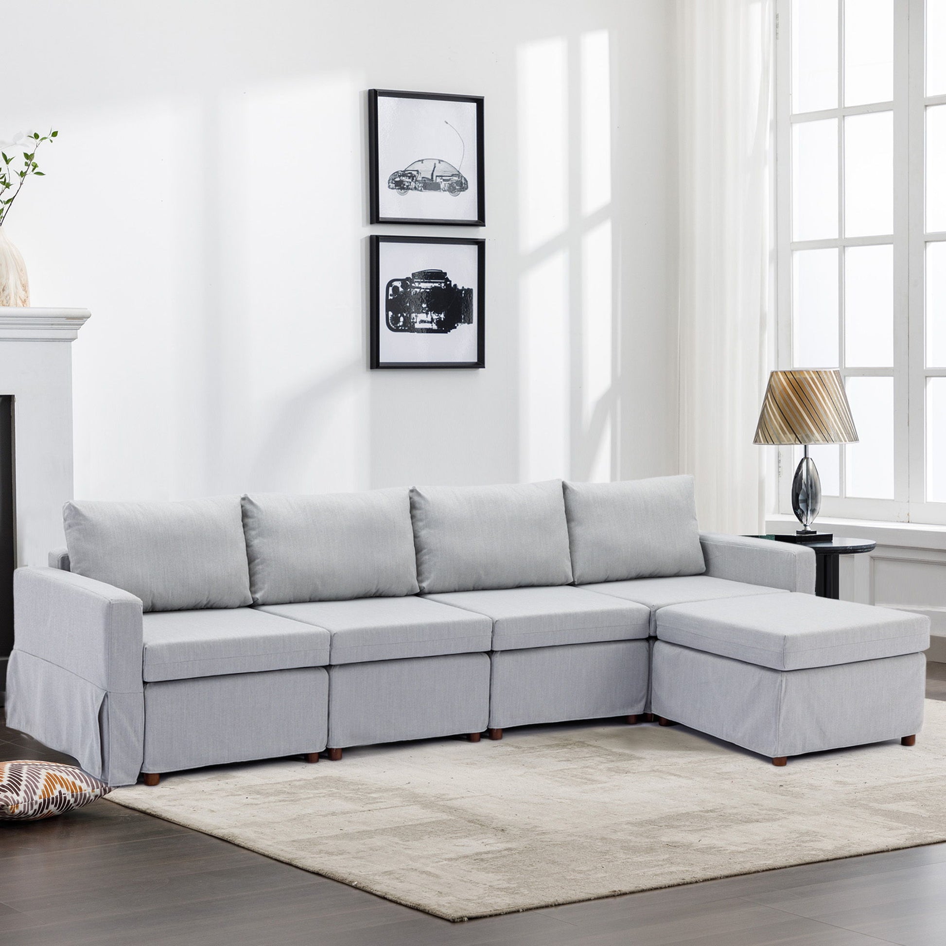 4 Seat Module Sectional Sofa Couch With 1 Ottoman, Seat Cushion And Back Cushion Removable And Washable - Light Gray