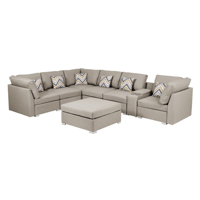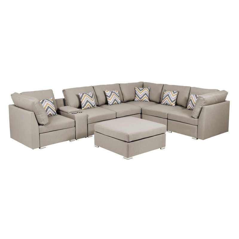 - Comfort, Style, and Quality! These are the important features for the Amira Collection. This beautiful modular sofa sectional with USB console with cupholders, ottoman, and six matching accent pillows will fit into any living room and impress your guests! The comfortable linen fabric with matching accent pillows will light up your living room with the most trendiest of looks. Perfect for apartments, condo, loft, and single family home, you will be able to welcome multiple guests comfortably where everyone is able to enjoy entertainment together.