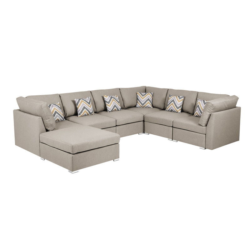 - Comfort, Style, and Quality! These are the important features for the Amira Collection. This beautiful modular sofa sectional with USB console with cupholders, ottoman, and matching accent pillows will fit into any living room and impress your guests! The comfortable beige linen fabric with matching accent pillows will light up your living room with the most trendiest of looks. Perfect for apartments, condo, loft, and single family home, you will be able to welcome multiple guests comfortably where everyone is able to enjoy entertainment together.