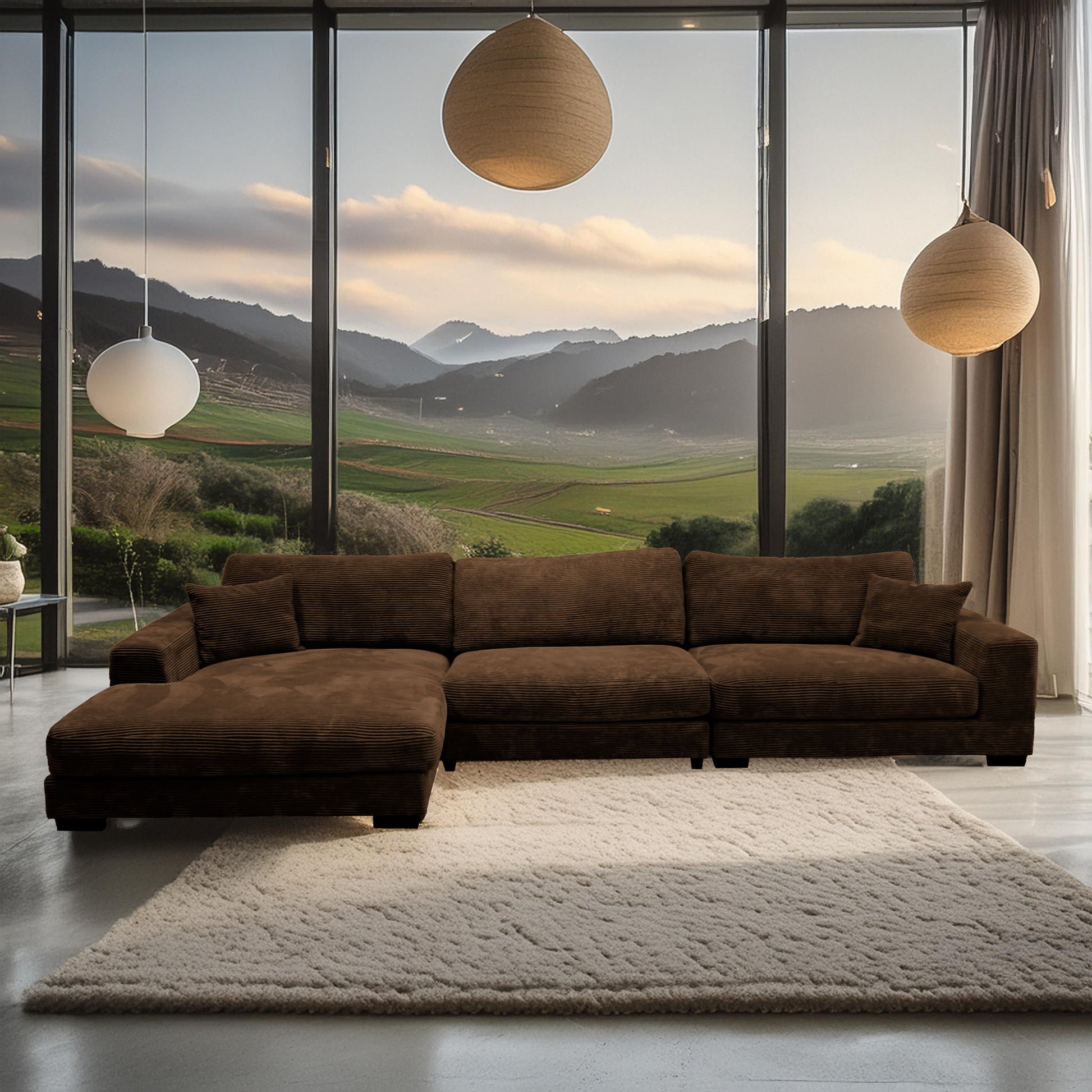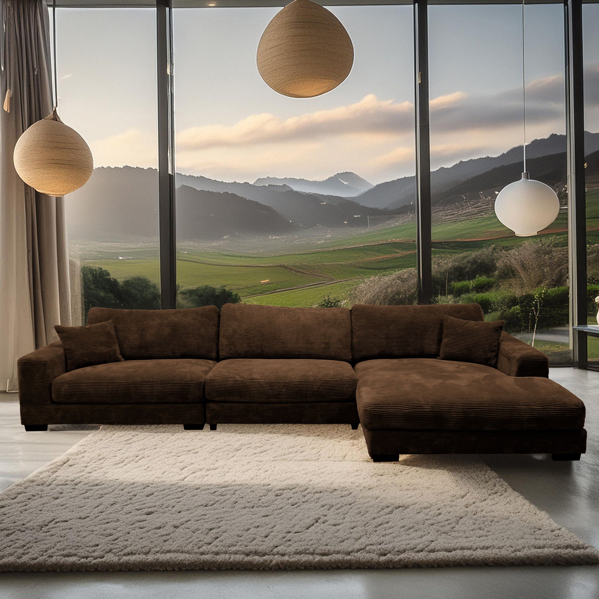 Bella - Corduroy Left-Facing 3-Piece Sectional - Dark Brown
