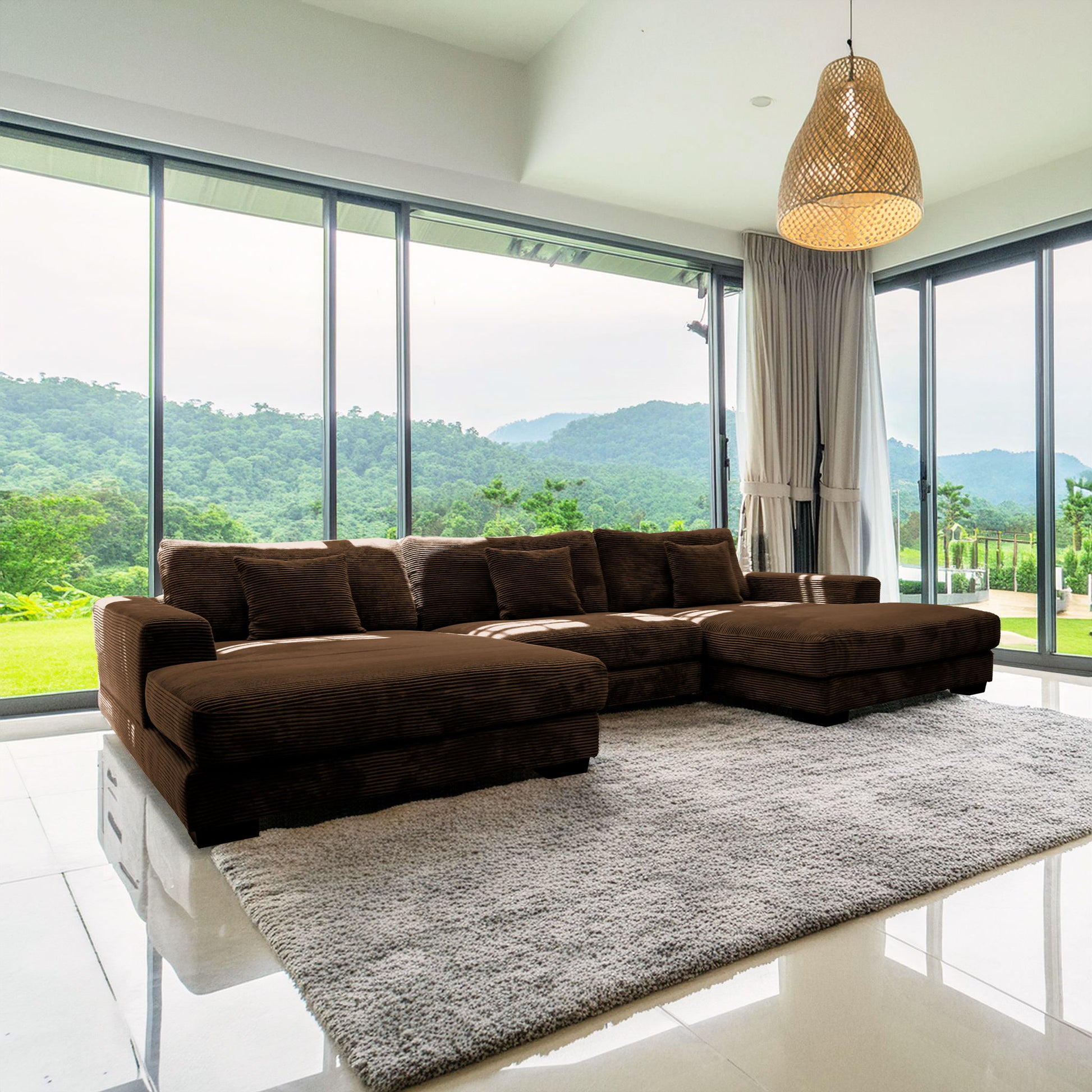 Bella - Corduroy U-Shaped 3-Piece Sectional - Dark Brown