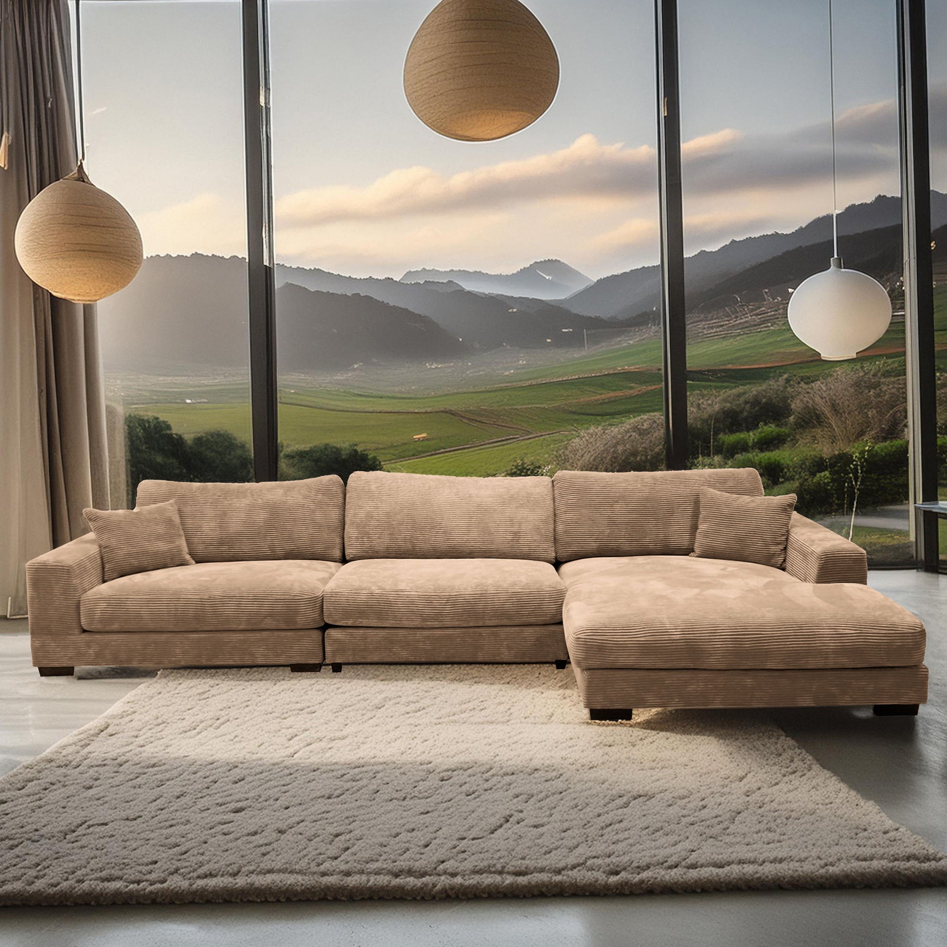 Bella - Corduroy Left-Facing 3-Piece Sectional - Beige
