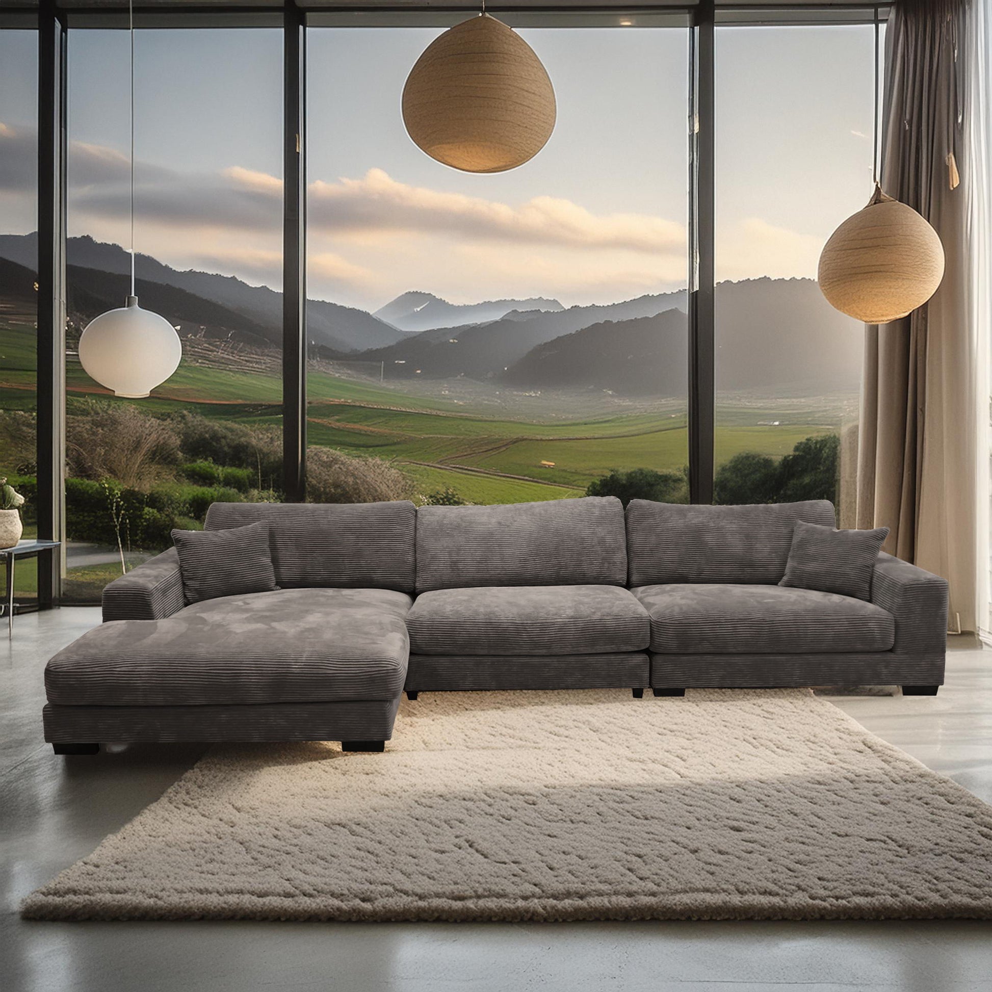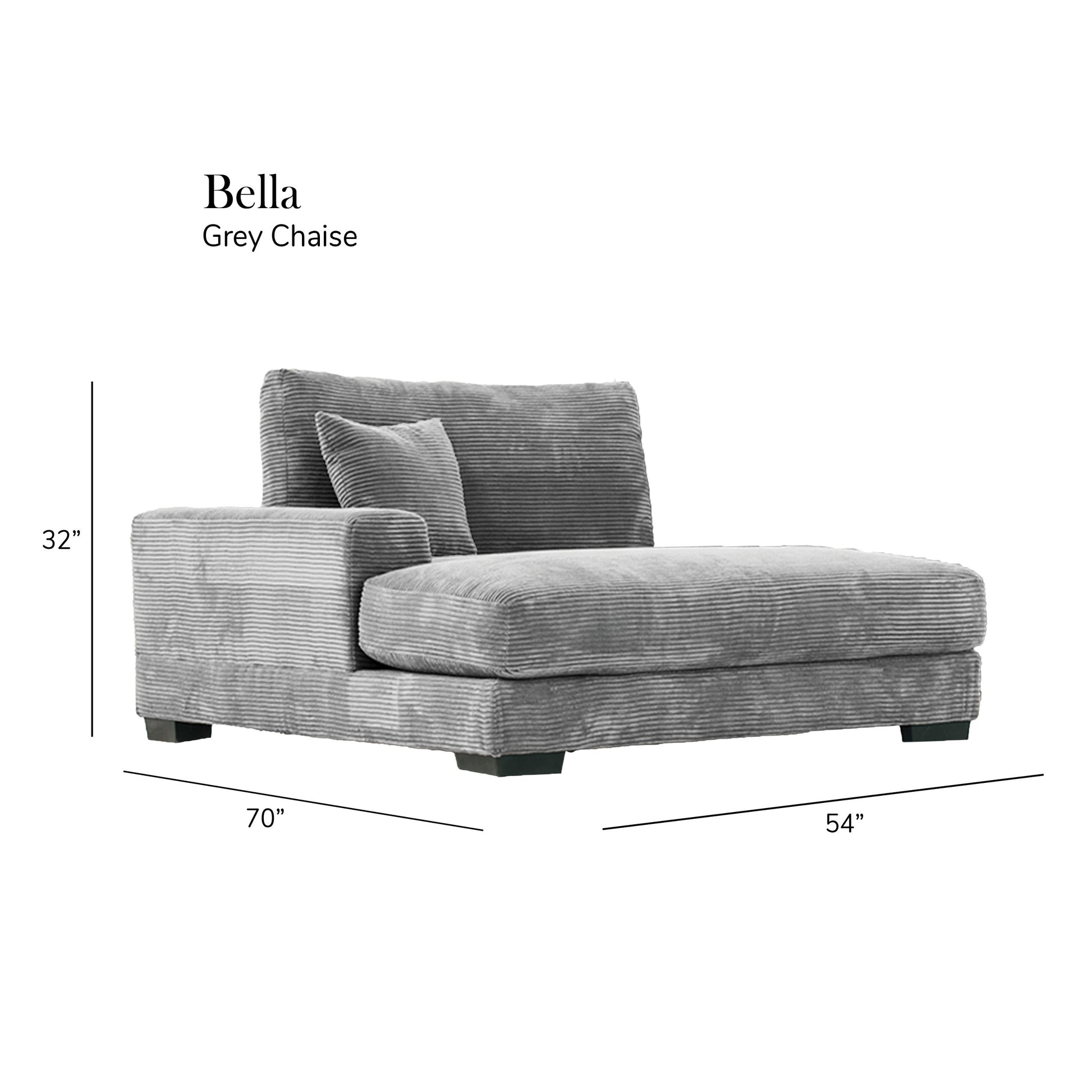 Bella - Corduroy Left-Facing 3-Piece Sectional - Gray