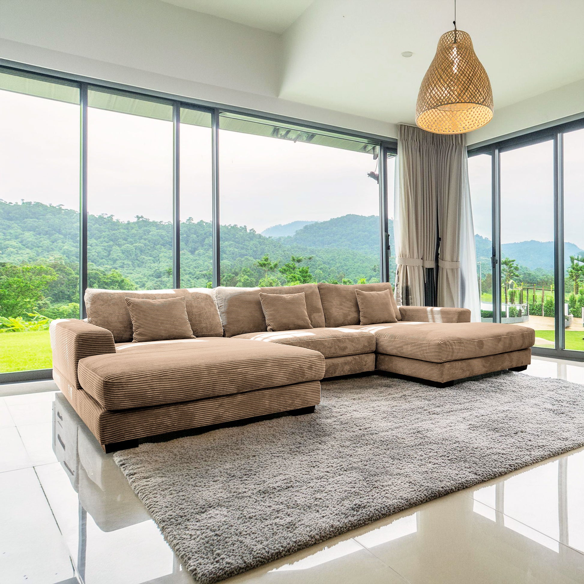 Bella - Corduroy U-Shaped 3-Piece Sectional - Beige
