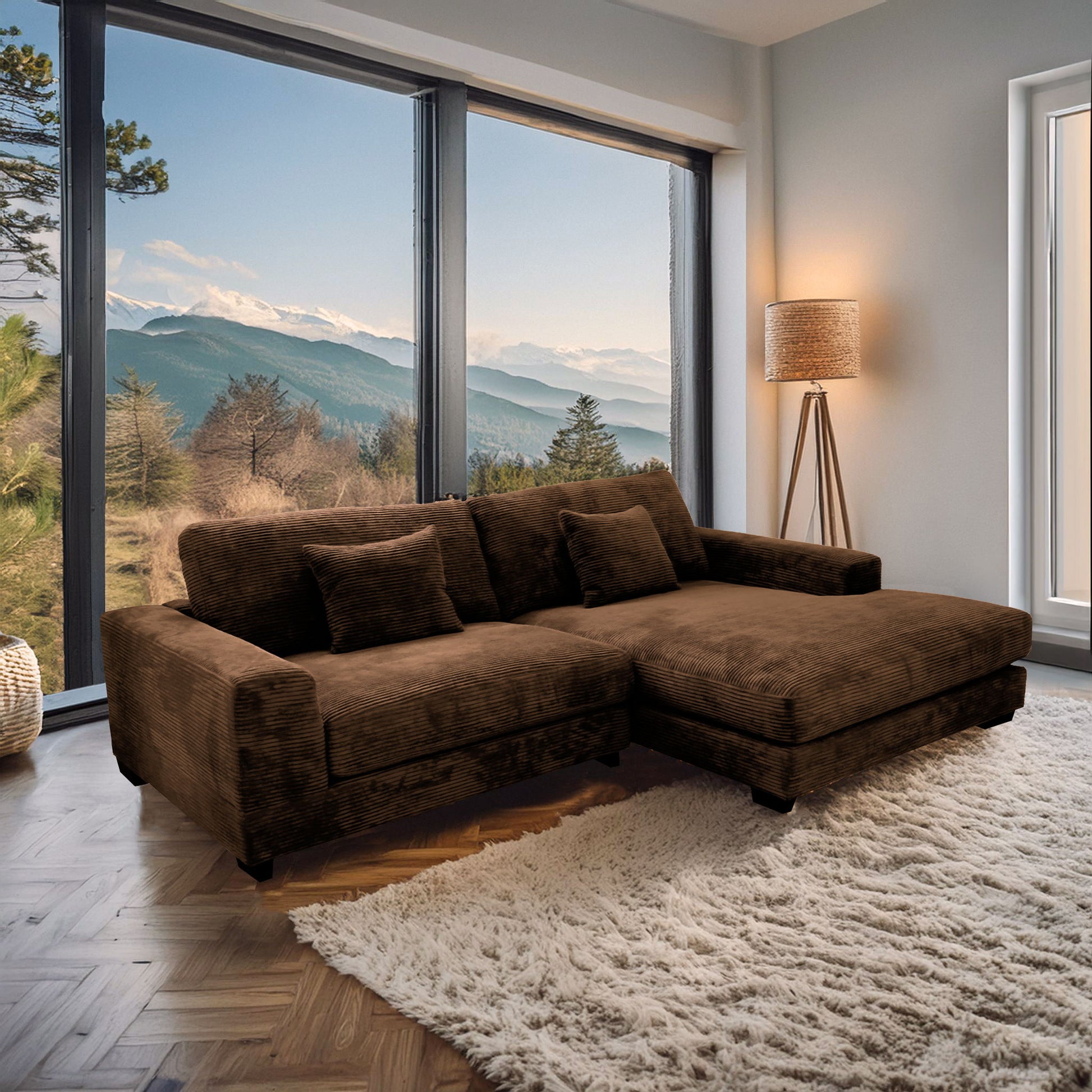 Bella - Corduroy Left-Facing 2-Piece Sectional - Dark Brown