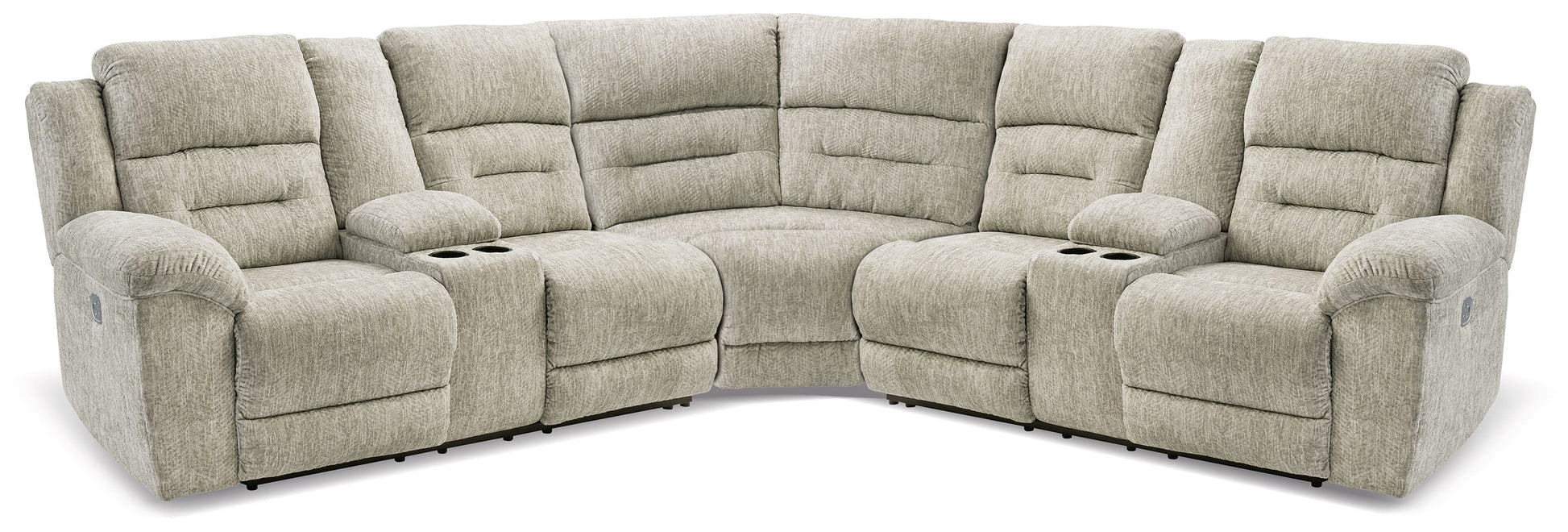 Family Den - Pewter - 3-Piece Power Reclining Sectional With 2 Loveseats With Console