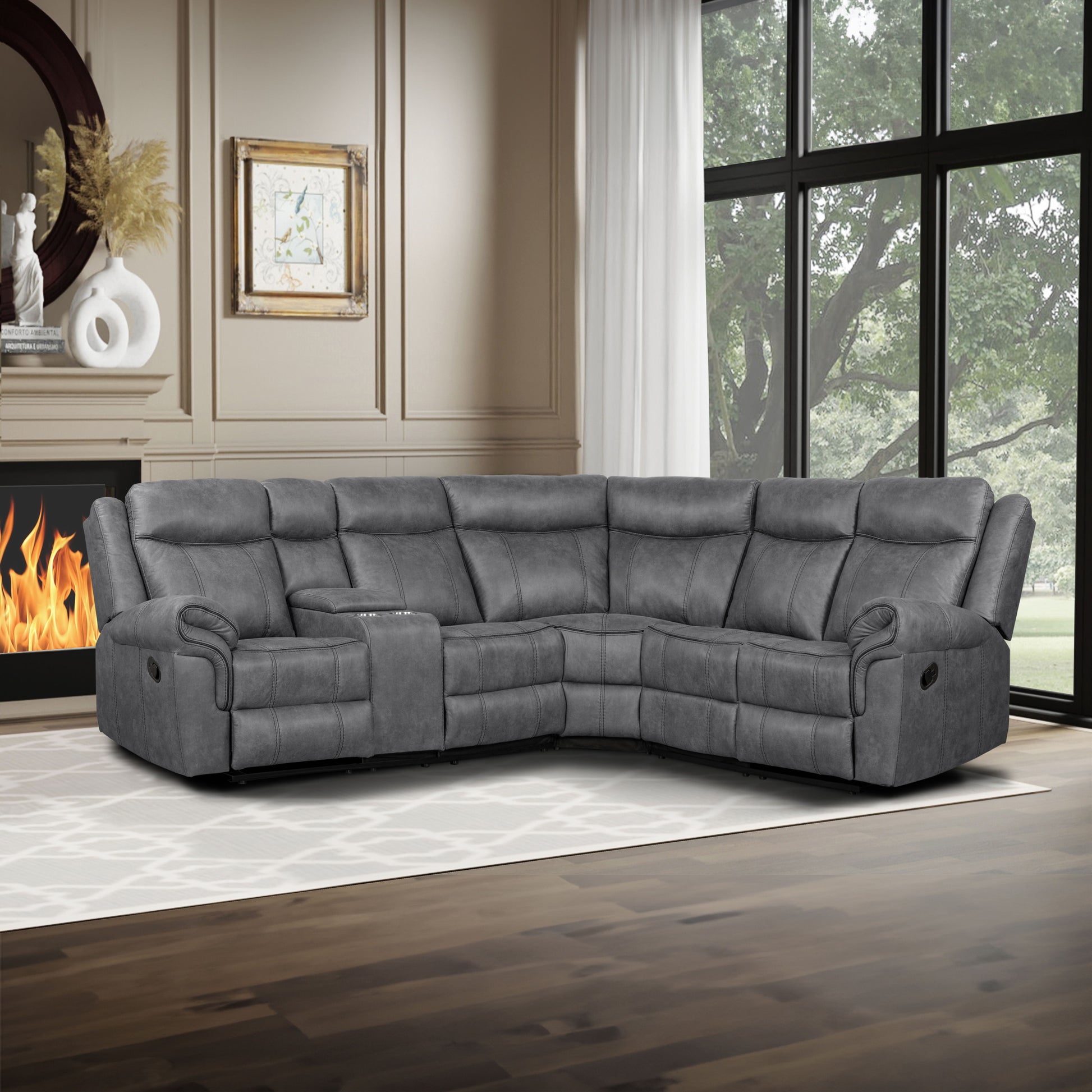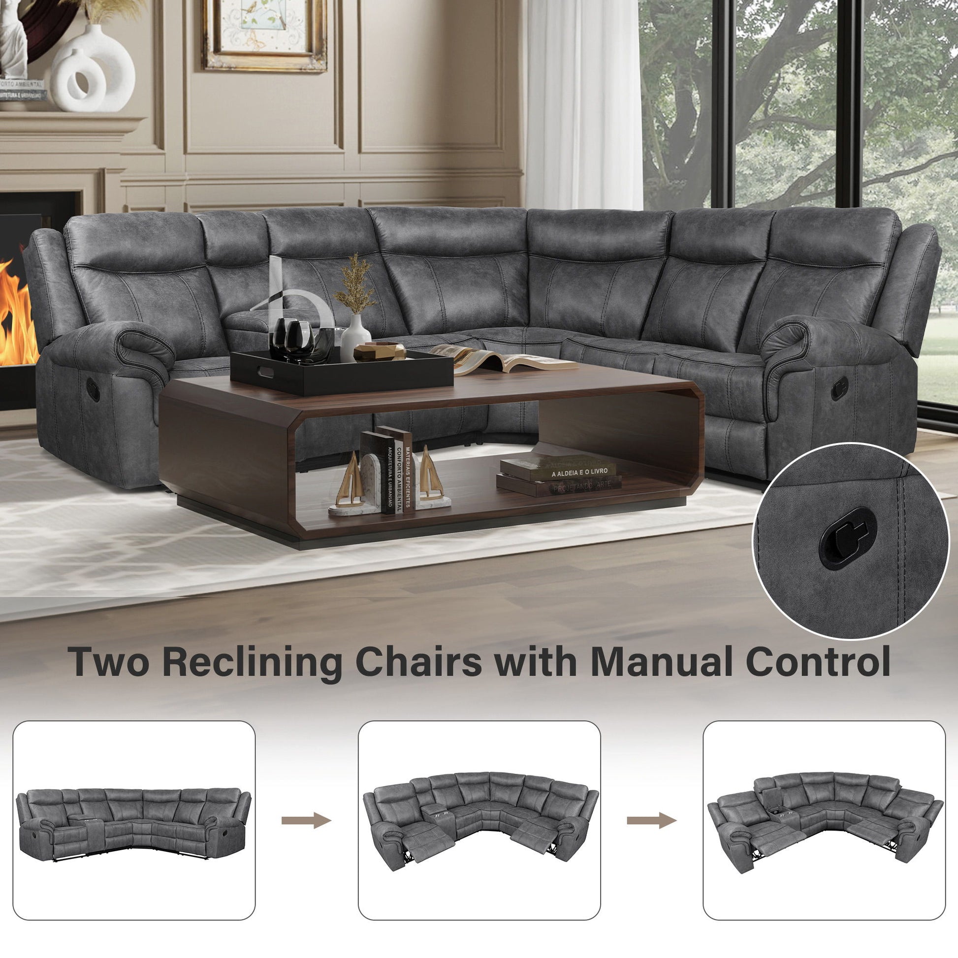 Home Theater Seating Manual Recliner With Cup Holder, Hide - Away Storage, 2 USB Ports And 2 Power Sockets For Living Room, Home Theater - Gray