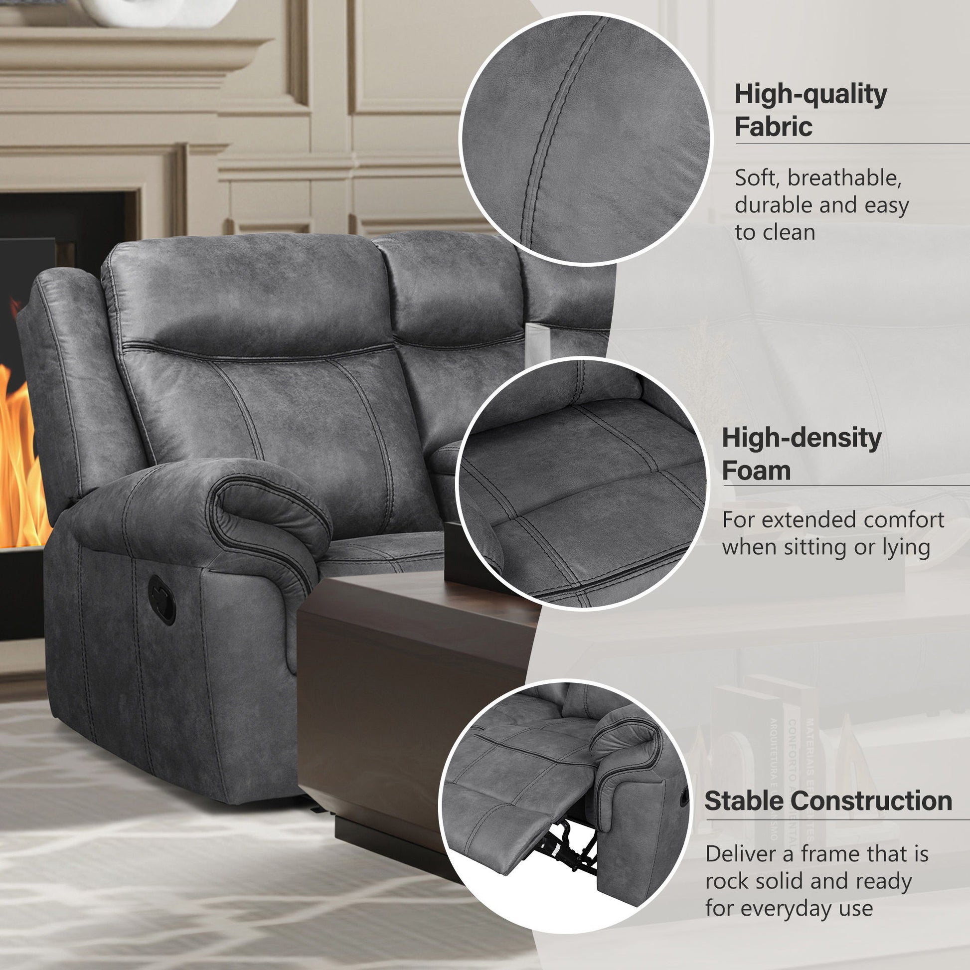 Adjustable Reclining: The manual reclining mechanism allows you to easily adjust the chair to your desired angle by pulling a device under the armrest and leaning back. Cup Holders: Built-in cup holders provide a convenient place to keep your beverages, helping to prevent spills and keep your space tidy. Hide-Away Storage: Hidden storage compartments offer ample space for storing remote controls, magazines, and other essentials, ensuring a clutter-free living room. USB Ports & Power Sockets: Equipped with 2 USB ports and 2 power sockets, this recliner allows you to easily charge your devices while relaxing. Comfort & Durability: Designed for unmatched comfort with an ergonomic design, this recliner features a sturdy plywood frame and a reclining metal rail system, making it durable and ideal for long-term use.