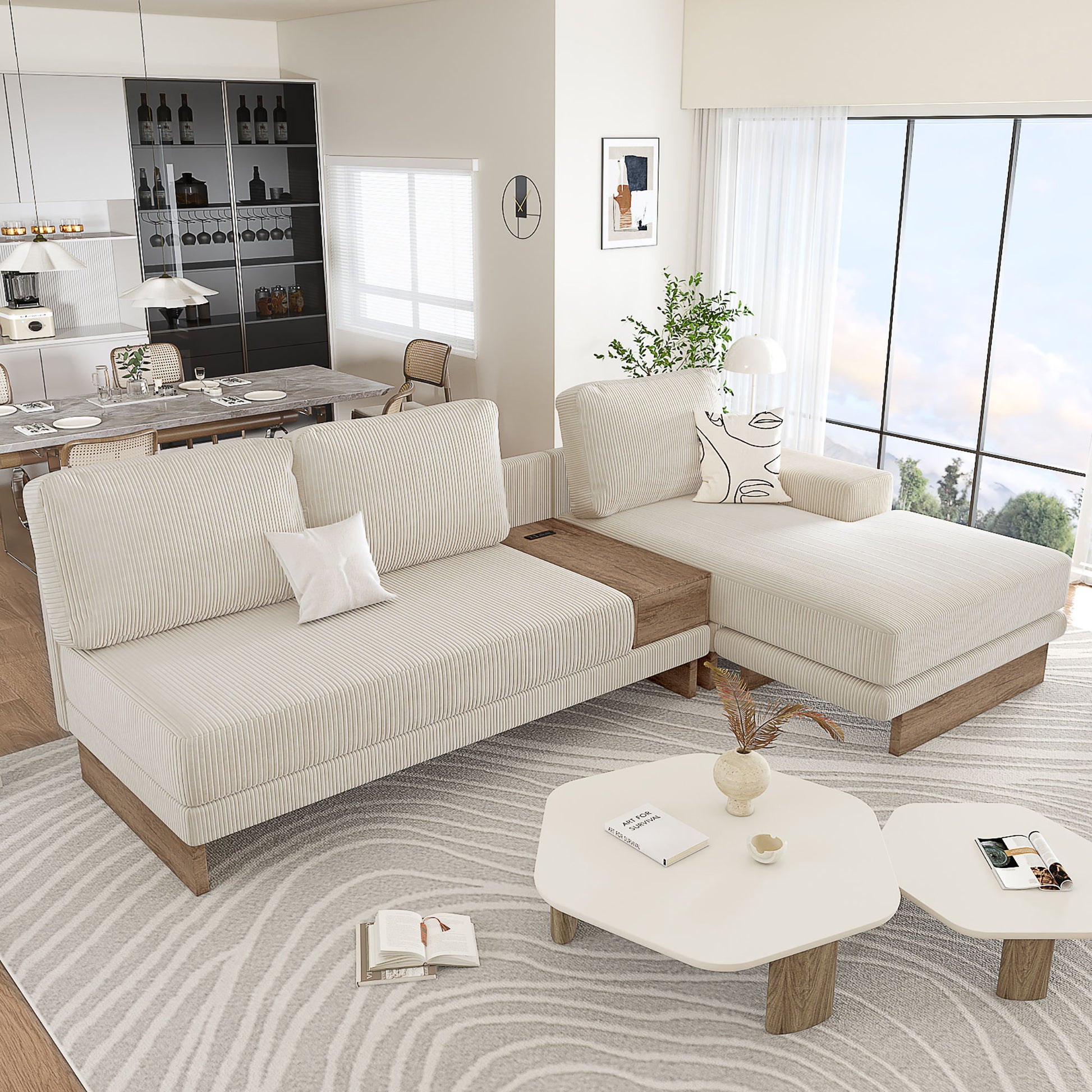 L-Shaped Sofa Sectional Sofa With Two USB Ports And Two Power Sockets, A Storage Drawer And A Reversible Chaise Lounge For Living Room - Beige